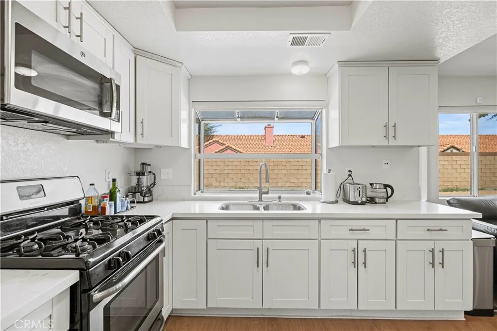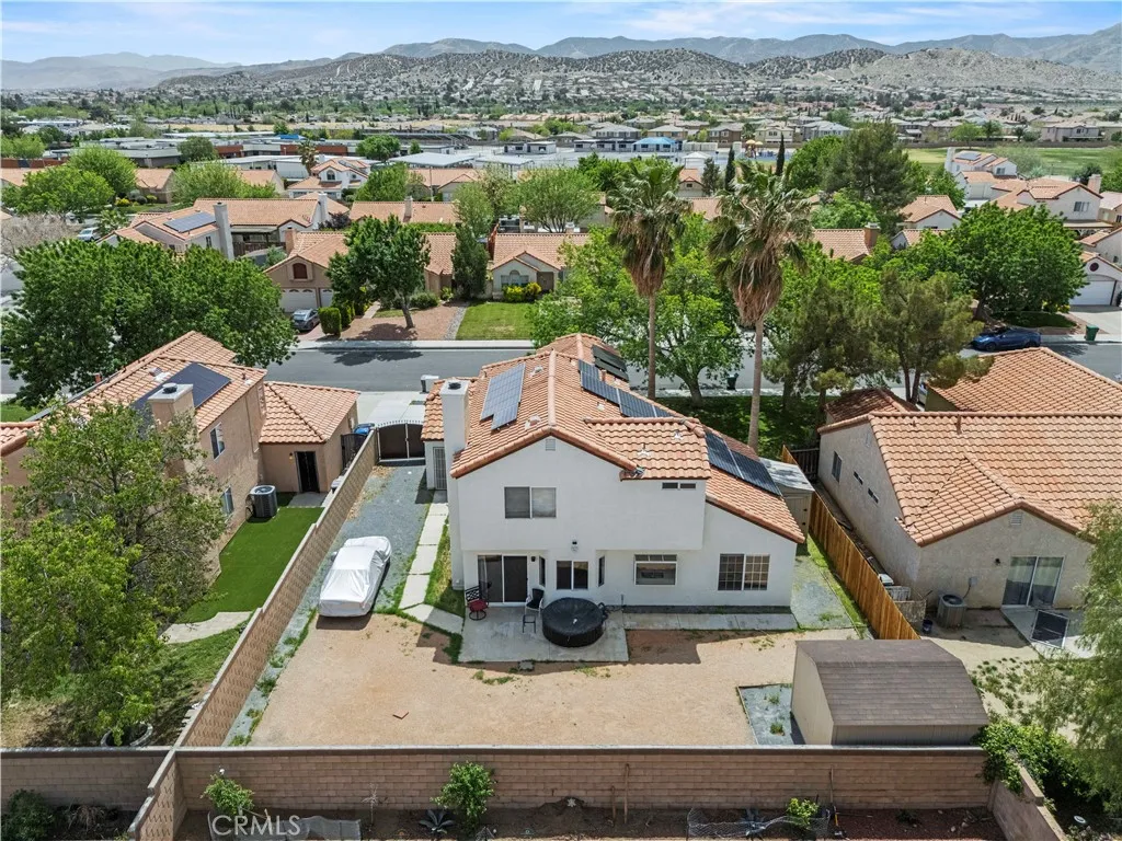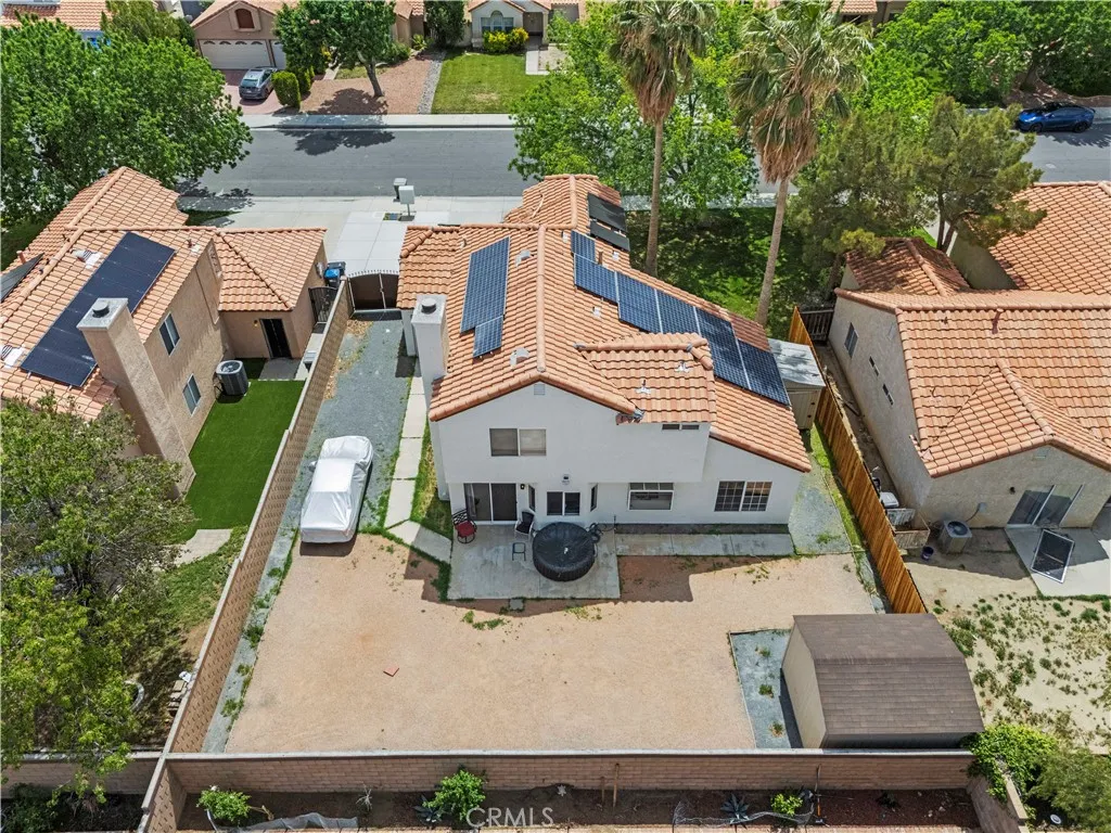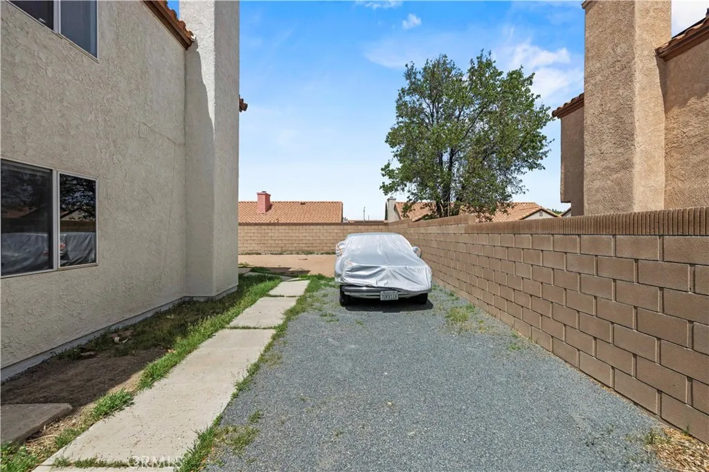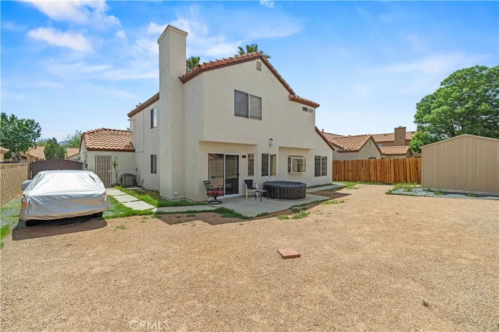 Welcome to this beautiful two-story home that effortlessly blends comfort, style, and functionality. Step inside to discover a spacious layout featuring a convenient downstairs bedroom and full bathroom, perfect for guests or multi-generational living. Upgraded laminate flooring flows seamlessly throughout the home, complemented by an abundance of natural light from the south-facing front, creating a warm and inviting atmosphere. The kitchen is a chefs delight, boasting modern cabinetry and exquisite quartz countertops that provide both durability and elegance. Upstairs, the primary suite is generously sized and includes a walk-in closet and a spa-like en-suite bathroom with upgraded tile and a double sink vanity. The house originally had five-bedrooms, but the previous owner combined two bedrooms into one expansive room, offering a flexible layout. The additional bedrooms are comfortably sized and full of potential. Step outside to a low-maintenance spacious backyard, perfect for eco-conscious living. Enjoy privacy and security with block walls and take advantage of the custom RV access and gateideal for recreational vehicles or extra storage needs. Large backyard storage units provide even more flexibility for the personal items. Located just minutes from the Antelope Valley Mall, local schools, and shopping centers, this home offers both convenience and quality living. Dont miss your chance to make this versatile and beautifully maintained property your own!