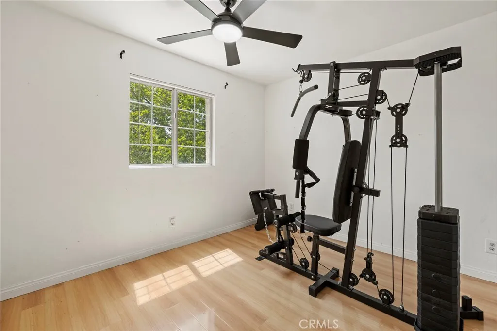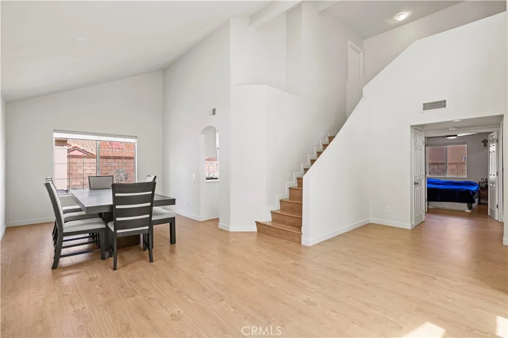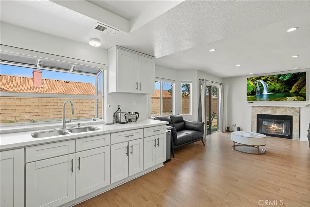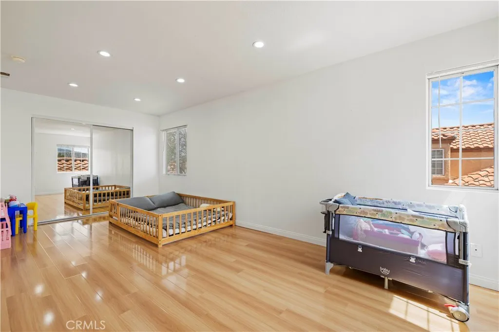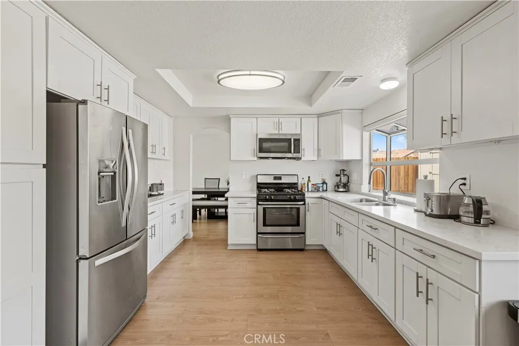 Welcome to this beautiful two-story home that effortlessly blends comfort, style, and functionality. Step inside to discover a spacious layout featuring a convenient downstairs bedroom and full bathroom, perfect for guests or multi-generational living. Upgraded laminate flooring flows seamlessly throughout the home, complemented by an abundance of natural light from the south-facing front, creating a warm and inviting atmosphere. The kitchen is a chefs delight, boasting modern cabinetry and exquisite quartz countertops that provide both durability and elegance. Upstairs, the primary suite is generously sized and includes a walk-in closet and a spa-like en-suite bathroom with upgraded tile and a double sink vanity. The house originally had five-bedrooms, but the previous owner combined two bedrooms into one expansive room, offering a flexible layout. The additional bedrooms are comfortably sized and full of potential. Step outside to a low-maintenance spacious backyard, perfect for eco-conscious living. Enjoy privacy and security with block walls and take advantage of the custom RV access and gateideal for recreational vehicles or extra storage needs. Large backyard storage units provide even more flexibility for the personal items. Located just minutes from the Antelope Valley Mall, local schools, and shopping centers, this home offers both convenience and quality living. Dont miss your chance to make this versatile and beautifully maintained property your own!