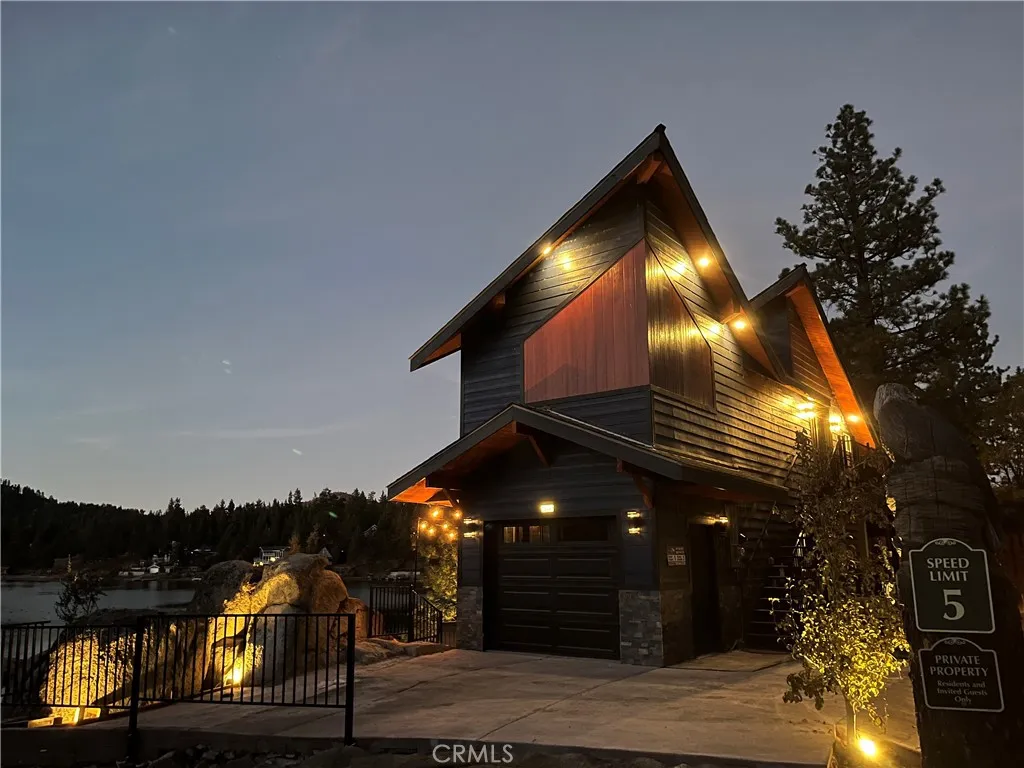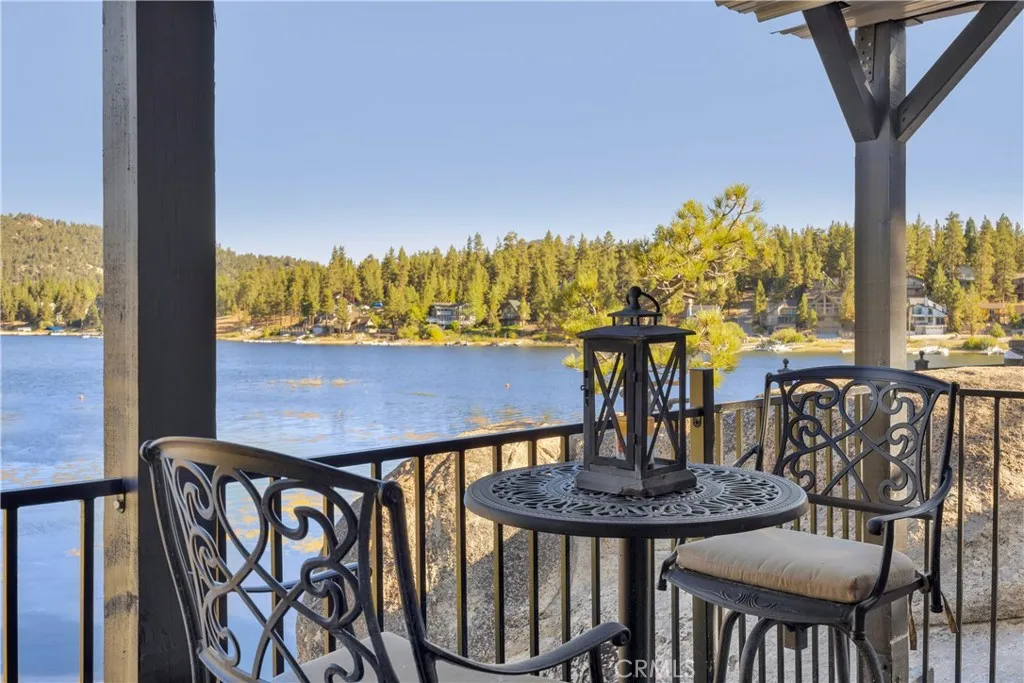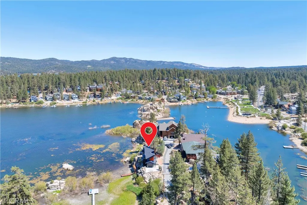 "2024" Multi-Level, Lakefront Chalet With Your Own Private Dock! Perfect Location on Boulder Bay With Expansive Sunset Views of the Lake and Forest Beyond! Wrap-Around Balcony to Enjoy The Fresh Air With Your Favorite View and Beverage! Gourmet Kitchen Fully Equipped for the Culinary Enthusiast Requiring A View! Nice Open Concept Living and Dining Rooms With A Cozy Wood-Burning Fireplace! Convenient Inside Laundry! Beautiful Cozy Bedrooms With More Million Dollar Views! Boasts a 1 Car Garage With an Electric Car Outlet, Overhead Storage and Direct Access! Remote Heated Driveway and Heated Guest Parking Spot! Dockside Sand Beach Patio With A Fire Pit, Perfect for Relaxation, S'mores, and Sunset Views After A Day On The Water! One Level Up and You Can Slip Into Your Lakeview Hot Tub! Central Air, Gas Heat And Water Conditioner! 1st Floor Bedroom, Bath, Living Room and Kitchenette With More Fabulous Views! (Could be used separately). Heavily Booked Short-Term Rental When The Owners Aren't Using or Improving! Big Bear Lake offers diverse attractions including winter sports at ski resorts, year-round family fun at the Alpine Slide and Magic Mountain Recreation Area, water activities like fishing and boating on the lake, hiking scenic trails, visiting the Big Bear Alpine Zoo, and exploring The Village at Big Bear Lake for shopping and dining.