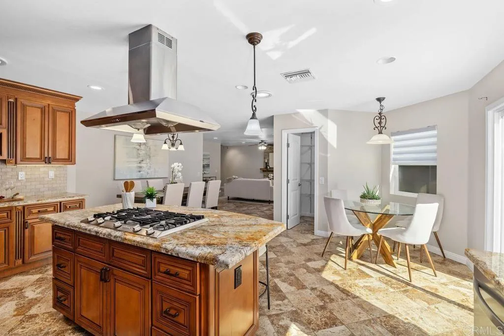 Rare find in this highly desirable neighborhood. Lets start with the amenities...Granite counters and a gourmet chef's island w/SS hood vent, 5 burner cooktop, custom cabinets w/self-closing drawers, SS fridge, SS Oven SS MW, SS DW, SS dual deep sink, walk-in pantry, recessed & under cabinet lights. Tile floors in main traffic areas, wood in the extra great/media/exercise/office whatever your heart desires room. Light & bright w/solar tubes and skylights, vaulted ceilings, C-Fans & carpet in BRs, A/C. Lovely patio to take in the sun in the morning and stars at night. Beautifully land & hard scape to enjoy. Stone coated steel tile roof, Cool-wall energy saving tex-cote stucco, nearly 1/3 acre lot, Close to award winning Rolling Hills elementary & in award winning Poway school district for middle and high school. Close to Trader Joe's, Nordstrom rack, Home Depot, Costco, movies, In-n-out, Krispy Kreme etc., Come and see for yourself!