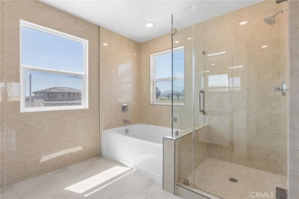 Welcome to Luxury Living at 14424 Buvan Court, Moreno Valley, CA 92555. Discover this newly constructed luxury home nestled in a cul-de-sac, designed for both elegance and functionality. ***PAID-OFF SOLAR PANELS*** make this home energy-efficient and cost-effective. As you step inside, you'll immediately notice the open floor plan bathed in natural light, creating a warm and inviting atmosphere. The spacious living room features a cozy fireplace, seamlessly flowing into the dining area and a chef-inspired European-style kitchenperfect for entertaining. A convenient half-bath is also available for guests. This home boasts beautiful wood flooring throughout and elegant tile in wet areas. A standout feature is the attached 2-bedroom, 1-bath ADU with its own private entrance, ideal for rental income or accommodating family members. Upstairs, sleek glass railings lead you to three additional bedrooms, including a primary suite with a spacious walk-in closet, built-in shelving, and a custom-designed European-style bathroom featuring a luxurious walk-in shower. A dedicated laundry room adds to the home's convenience. Step outside to a versatile backyard, perfect for relaxation, entertaining guests, or hosting barbecues. Youll have the opportunity to customize the landscaping to suit your style. The home also includes a custom-designed two-car garage. Situated in a highly desirable community, this property offers easy access to shopping centers, restaurants, and Freeway 60. This isnt just a homeits THE home