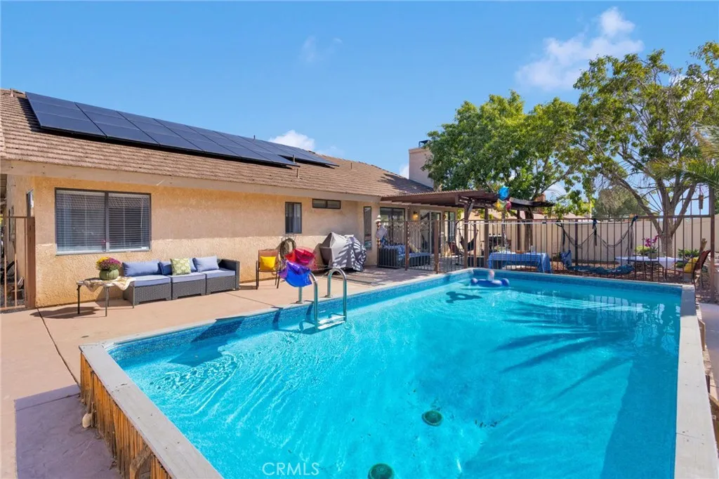 Beautifully UPGRADED POOL Home!! This is a Terrific SINGLE STORY Home and Located in a Family Friendly Community with NO HOA FEES and LOW LOW TAXES * * Come Enjoy this Spacious Floor-Plan Offering 2023sqft with 4 LARGE Bedrooms, Separate OFFICE/Play-Room and 2 FULL Bathrooms * * REMODELED Kitchen w/QUARTZ Counters and Custom Back-Splash, White Shaker Cabinetry, Breakfast Counter for the Kids, STAINLESS STEEL Appliances, Walk-In Pantry & Breakfast Nook * * Cozy Family Room with Raised Hearth Brick Fireplace and LUXURY Vinyl Plank Flooring Throughout * * Wonderful Backyard is PERFECT for ENTERTAINING with a SPARKLING In-Ground POOL (gated for child safety), Large Covered Patio, Gated Side Yard for the Dogs and Lots of Room for the Kids to Play * * UPGRADED & REMODELED Throughout with Custom 2-Toned Paint, Remodeled Kitchen, DESIGNER FIXTURES, Ceiling Fans, Mirrored Wardrobes, Remodeled PRIMARY BATH with Custom Shower & Quartz Counters, LVP Flooring and Base Molding and MUCH MORE * * Spacious Primary Bedroom with Large Walk-In Closet & HIGH Pitched Ceilings - AND - Remodeled Primary Bathroom with DUAL Sinks, Quartz Counters and Custom Tiled Walk-In Shower * * (3) Additional Nicely Appointed Bedrooms and a SEPARATE Office/Play-Room * * TWO Car Attached Garage has an Enclosed Office (can be removed) * * TERRIFIC Curb Appeal with Covered Front Porch and Drought Tolerant Landscape * * Close to Schools, Shopping, Dining/Restaurants, Parks and EZ Freeway Access * * SUBMIT YOUR OFFER Before it's GONE!!!!