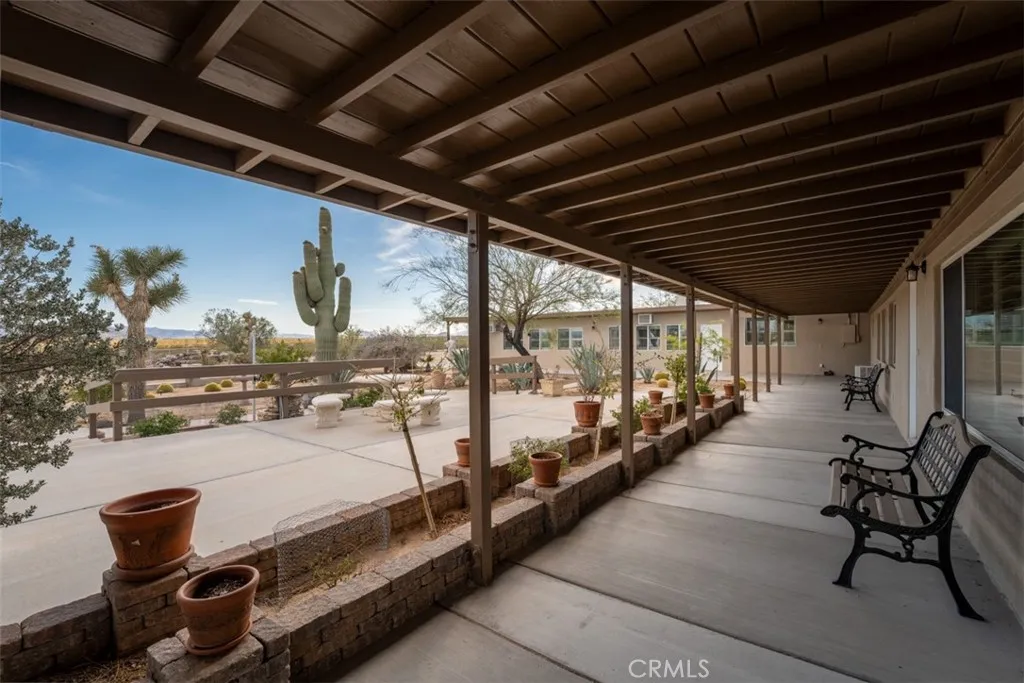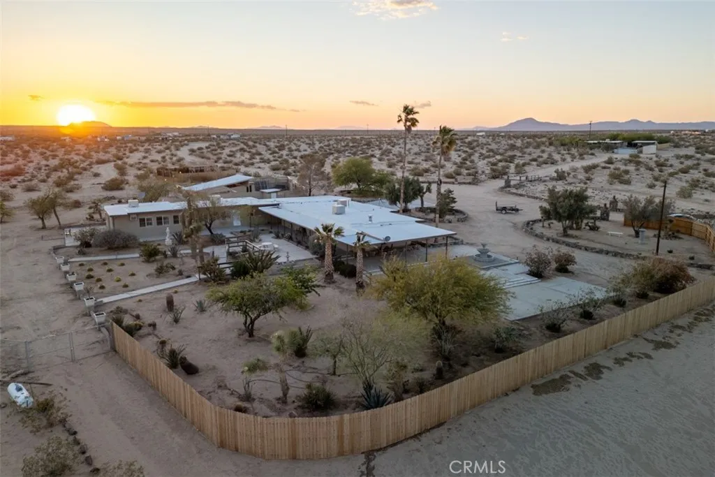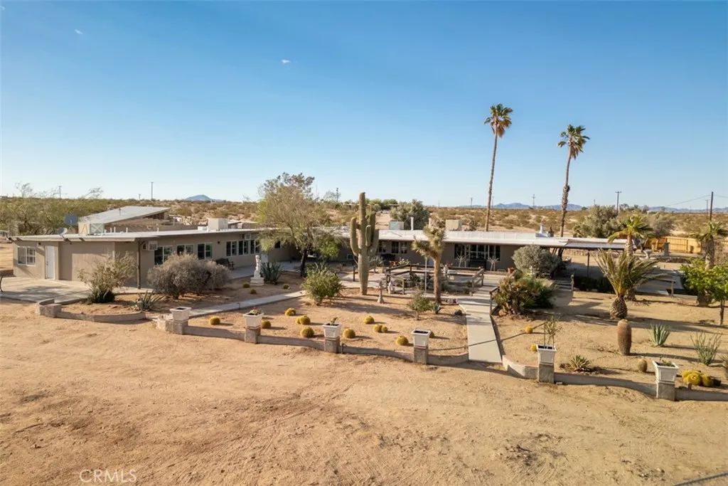 Welcome to 66136 Mars Dr, an unparalleled generational gem located in the serene 'Copper Mountain Mesa' area of Joshua Tree, offering a deluxe package that includes two spacious, beautifully maintained homes sprawling over 25 majestic acres (5 acres of house property, 20 adjacent acres). The main house features two grand bedrooms with two bathrooms, one appointed with a relaxing jacuzzi tub, and a walk-in shower. The companion house offers three complete bedrooms, two bathrooms, and a bonus or family room equipped with a walk-in closet that can also serve as an extra bedroom, giving it a total of 5 complete bedrooms and 4 bathrooms. For nature lovers and admirers, the property harbors established Joshua trees, mesquite trees, and an ancient saguaro cactus over a hundred years old, a testimonial monument on the landscape. The property features historic touches such as its remarkable walls, built using rocks hauled meticulously from copper mines over the last 55 years by the hands of the original owner's family. The parcel comes with a paid water meter, with an additional 10-acre lot to the south also primed and ready with a service-ready water meter. Relish the peace and tranquility as you watch the sunrise, sunset, and shimmering night stars, and take in the picturesque landscape views from the viewing tower. Indulge in the love and history that emanates from the very walls of this home, as this property promises a life away from tourist traffic and light pollution while being conveniently close to town services, promising a delightful experience of living amidst the natura