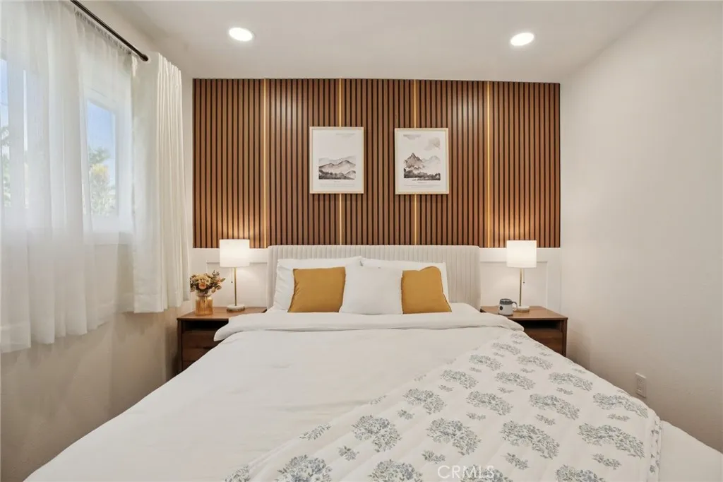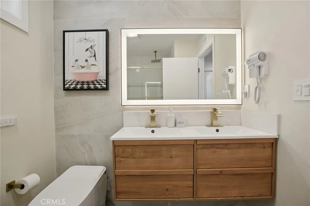 Nestled in a prime Santa Ana location, just moments from local parks and the world-class shopping of South Coast Plaza, this residence is not merely a homeit is a meticulously curated work of art, offered fully furnished with all designer furniture and decor included. Reimagined from top to bottom, it presents a rare opportunity to own a property where every detail has been executed with precision and a passion for quality. From the moment you arrive, the striking architectural presence and manicured grounds signal that something truly special awaits. Step inside to an expansive, light-filled open-concept space where a symphony of design elements unfolds. A recurring motif of architectural vinyl wood slatsfrom the breathtaking floor-to-ceiling fireplace to the custom room dividers and ceiling inlayscreates a cohesive and sophisticated aesthetic that is both warm and modern. The epicurean kitchen serves as the home's vibrant heart. It is a chefs dream, appointed with bold quartz countertops that cascade down the waterfall island, a full-height matching backsplash, a stainless steel farmhouse sink, and high-end appliances. Adjacent, a dedicated beverage center with a built-in wine fridge stands ready for effortless entertaining. Your private sanctuary awaits in the luxurious primary suite. This serene retreat features its own custom accent walls and a spa-like en-suite bathroom designed for ultimate relaxation. Here, you will find a floating double vanity with a backlit mirror and the home's crown jewel: a high-tech, enclosed steam shower with a rainfall head, body jets, and