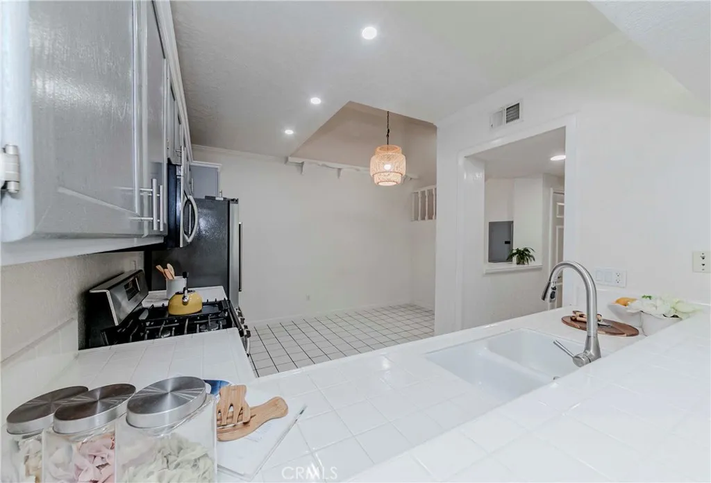 Welcome to this charming End-unit condominium in the gated Harbour Walk community! This bright and inviting home features a gourmet kitchen with tile countertops, stainless steel appliances, breakfast nook, and high ceiling. The cozy living room with fireplace. The dining area that opens to a private patio with laundry and extra storage. Upstairs, you'll find two primary suites, each with its own private bathroom and walk-in closet. Additional highlights include central A/C & heating, two assigned gated parking spaces (#414 & #459), and a convenient location near parking, mailbox, and pool. HOA dues of $714 include water and trash. The Harbour Walk community offers recent upgrades including a newer roof and exterior paint, plus resort-style amenities: pool, two spas, sauna, BBQ area, clubhouse, and ample guest parking. Prime North San Pedro location with easy access to the 110 freeway, scenic parks, waterfront, shopping, dining, and entertainment. Enjoy comfortable living in a move-in ready home!