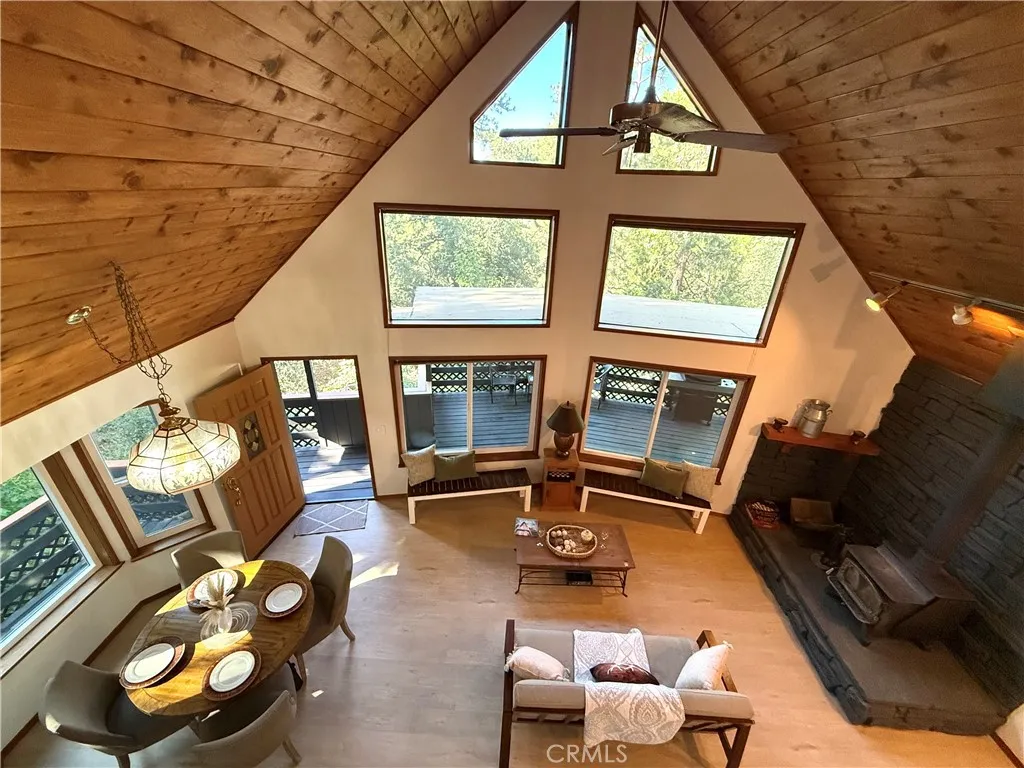 *******$5,000 in Closing Costs with full Price Offer******** Priced to sell under appraised value!! Welcome to your dream home in Angelus Oaks! This beautifully remodeled modern cabin offers a perfect blend of serenity and contemporary comfort. Situated on a spacious lot with a long driveway and flat parking spaces, this move-in-ready home invites you to relax and enjoy from day one. Inside, you'll find two bedrooms with generous closets and breathtaking views. Each level features a well-sized bathroom, providing convenience and privacy. The renovated kitchen comes fully equipped with appliances, combining both style and functionality. The open-concept living room is a standout, featuring a cozy wood-burning stove and large windows that flood the space with natural light. A convenient laundry room with a washer and dryer is located on the first floor. Upstairs, a spacious second bedroom includes its own en-suite bathroom for added comfort. Step outside onto the wraparound deck the perfect space for entertaining or simply soaking in the peaceful surroundings. The property also includes a two-car carport and plenty of room for outdoor activities or future enhancements. Whether you're looking for a relaxing weekend getaway or a cozy year-round residence, this charming cabin has it all!