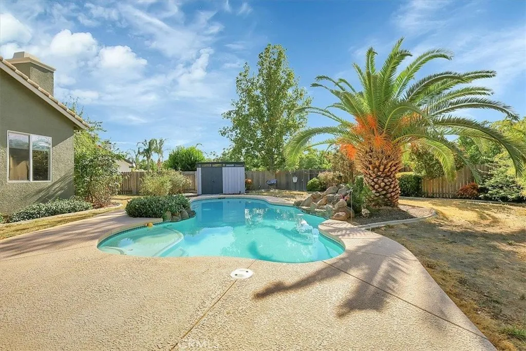 Start your tour of 1881 Kendall Ct, A contemporary 3bd 3ba, plus office/Den or 4th bedroom option, 2615sqft, 3car garage home w/built in pool, .31acre lot & Solar. Located in the quiet neighborhood of Tres Picos Estates in NW Yuba City. From the moment you step inside, you'll be drawn to the home's modern, open design & desirable split floor plan. Inviting Formal Living room & separate spacious family room w/nice stone fireplace w/mantle, Nice open kitchen w/tile counters, dining bar, nice cabinetry, island, pantry closet, breakfast area w/outside access. A unique feature of this home is the mini-suite, ideal for growing kids, extended family, or multigenerational living. Master suite includes private outdoor access, a large bathroom w/double sinks, a separate tub & shower, & a spacious walk-in closet. Step outside & you'll find a backyard designed for both entertaining & enjoyment. Beautiful Gunite pool, while the expansive side yard offers multiple raised garden beds & an impressive variety of 20 fruit trees, including four cherry varieties, three oranges, three apples, two pomegranates, two pluerry, two plums, as well as Asian pear, lemon, nectarine, and peach. With its spacious layout, modern amenities, & thoughtfully designed outdoor retreat.