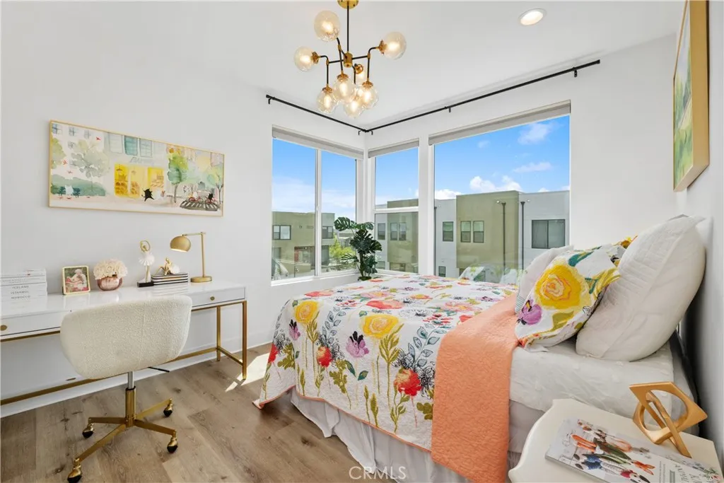 Like-New Luxury Upgraded Turnkey End-Unit Residence in Irvine Great Park NeighborhoodExceptional Value! Just Minutes Walk to top-rated Portola High School and Solis Park School (K8) in the award-winning Irvine Unified School Districtdaily drop-offs are skipped, making life a true breeze for parents. 3 beds, 2.5 baths, and 1,812 sqft of living space. Premium End Unit boasts superior natural light, enhanced privacy, a quieter setting, a larger front yard, and an L-shaped deck. The expansive Open-Concept Layout seamlessly connects the kitchen, living, and dining areas, enhanced by 10-foot ceilings to create a harmonious flow of space. Oversized windows paired with floor-to-ceiling doors bathe the interiors in abundant natural light, accentuating the homes spacious design and luxurious appeal. Tasteful upgrades include whole-house wood flooring, whole-house water softening system, and elegant chandeliers. Stunning primary bedroom suite features a walk-in closet, dual vanity, and a walk-in shower. Two secondary bedrooms are generously sized too. The first floor offers ample storage closets and direct access to a side-by-side 2-car garage. Energy-saving features include leased solar system, EV charger pre-wire, energy-efficient windows,and tankless water heater. Just minutes from Woodbury Town Center, Irvine Spectrum Center, and Kaiser Permanente, etc. Enjoy Great Parks world-class recreational amenities and the state-of-the-art sports complex, with easy access to I-5, 133, 405, and 241. Only 1825 minutes drive to Newport Beach and Laguna Beach.