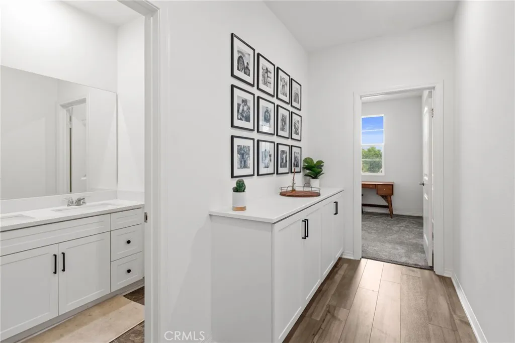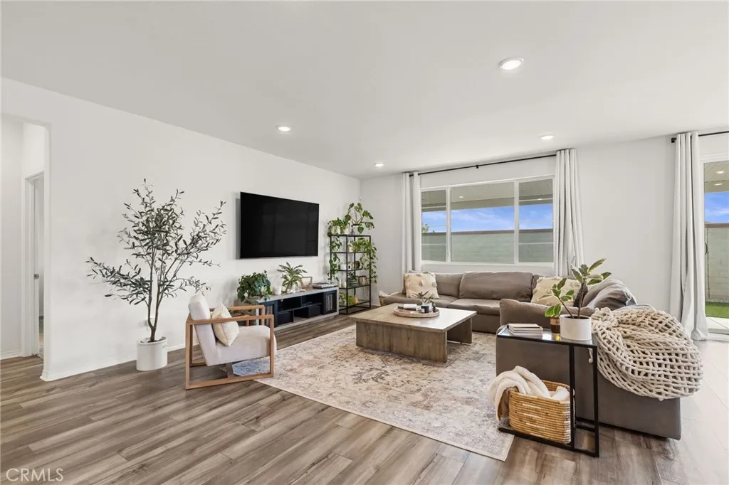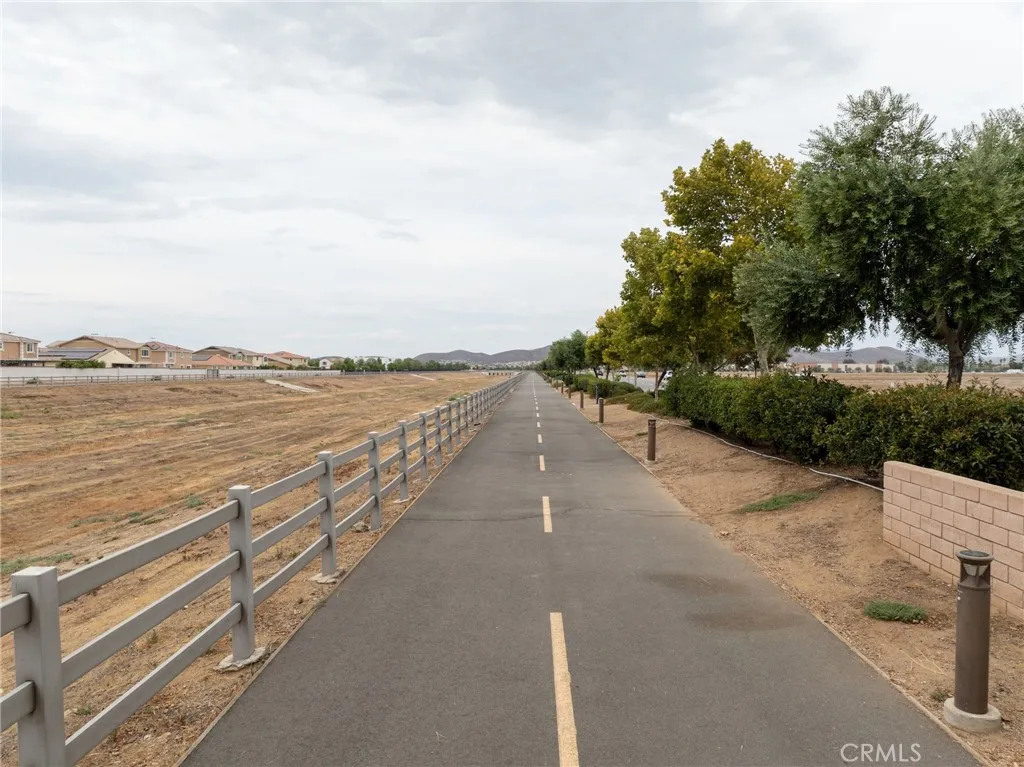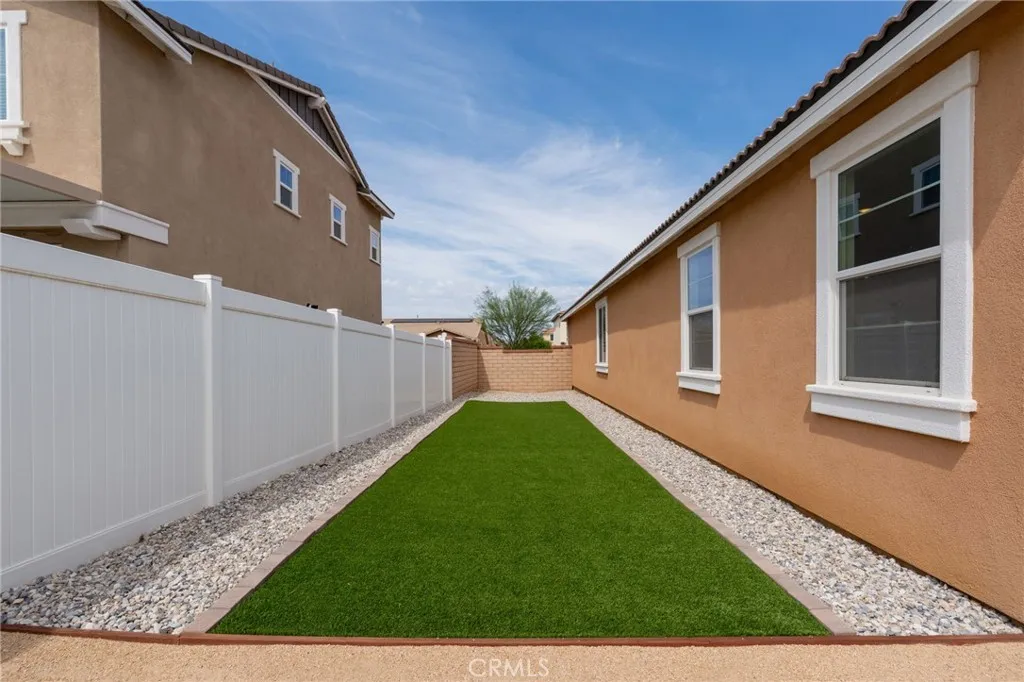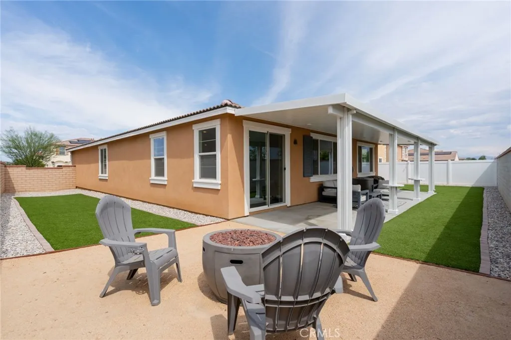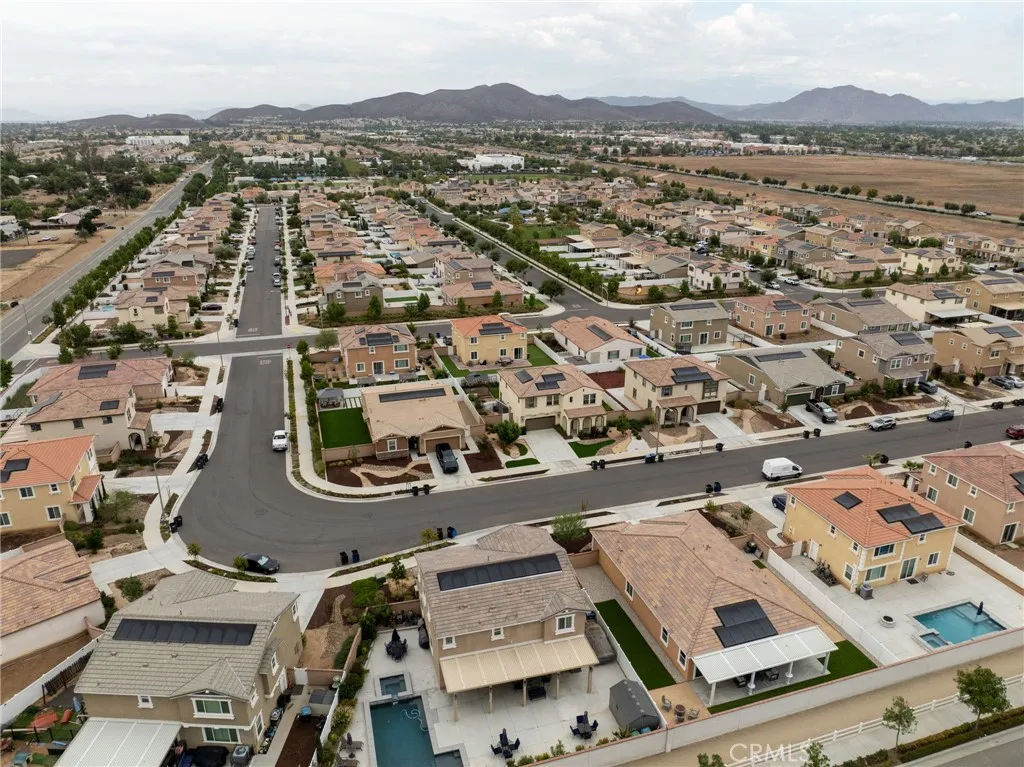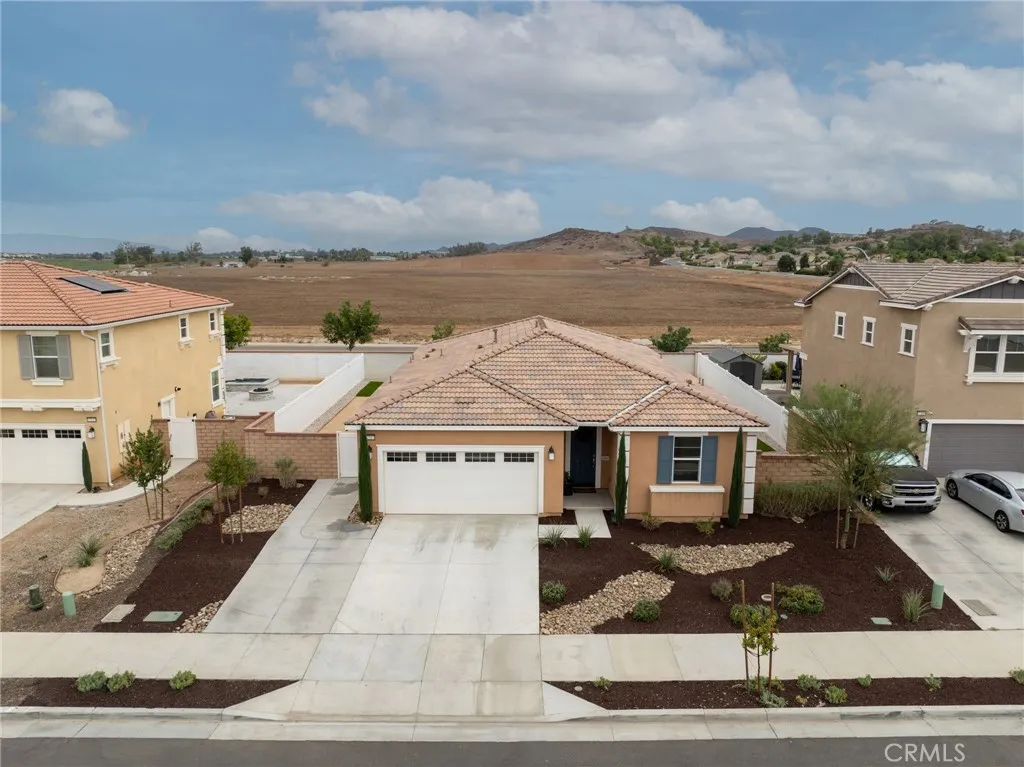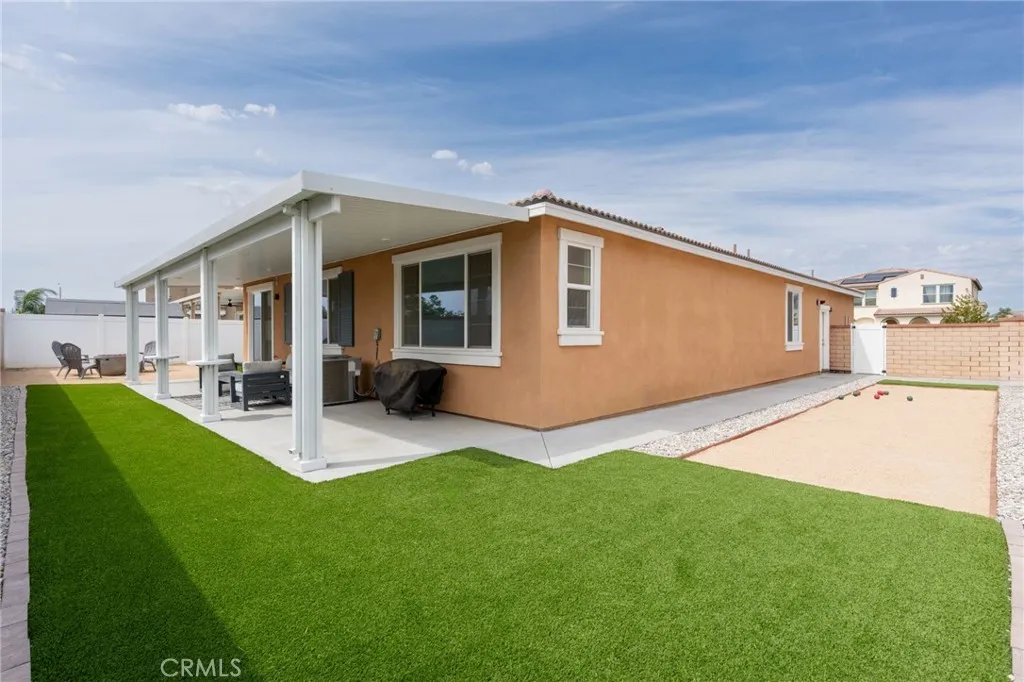 Welcome to Menifee Town Center, where modern design meets resort-style living. This stunning single-story Lennar-built home offers 4 bedrooms, 2 baths, and 2,088 sq. ft. of thoughtfully designed space with a 2-car garage with EV charger and a versatile open floor plan with solar. Inside, youll find designer touches throughout such as upgraded flooring, a calming color palette and an abundance of natural light. The spacious great room flows seamlessly into the dining area and kitchen with large center island creating the perfect space for entertaining and everyday living. The split-bedroom layout ensures privacy, while the primary suite offers large windows, spacious walk-in closet and well-appointed bathroom. 2 addtional guest bedrooms and secondary bath with dual vanities located on opposite side of the home to unsure privacy. 4th bedroom has been tastefully curated into the dreamiest nursery and is privately situated on its own wing of the home. Spacious laundry room offers expansive shelving for ample storage and organization. Step outside to your own backyard oasis with a covered patio, private bocce ball court and low-maintenance landscapingideal for gatherings, play, or lovely evenings at home. Living in Menifee Town Center means more than just a homeits a lifestyle. The community features a 5-acre central park with shaded picnic areas, walking trails, splash pad, future amphitheater, and playgrounds. Residents enjoy The Cortana Club, a private recreation center with a resort-style pool, spa, fire pits, bocce courts, and social spaces. A dog park, tot lots, and nearby