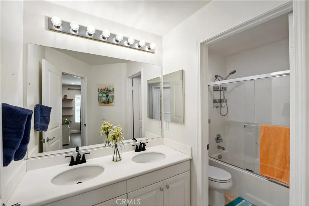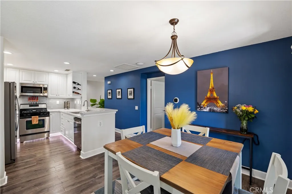 Absolutely fabulous 1404 sq ft townhome located in the highly desirable Mariposa community of Plum Canyon. This gorgeous unit is perfect for entertaining with an open floor plan that flows seamlessly from the kitchen through the dining area and into the living room. The kitchen features quartz counters, custom backsplash, beautiful white cabinets and stainless steel appliances. The spacious living room and dining area include a cozy fireplace and access to the balcony, which is a perfect place to enjoy your morning coffee or sip on your favorite cocktail as you enjoy our wonderful Southern California nights. The primary bedroom is large and has a big walk-in closet and en-suite bathroom with dual sinks. The secondary bedroom is also an ample size and is adjacent to the second bathroom, which also includes dual sinks. The townhome also has direct access to the private garage, additional carport space, separate laundry room, upgraded flooring and recessed lighting. A huge plus is the low HOA and no Mello Roos! The Mariposa complex has a community pool with cabanas, spa, clubhouse, BBQ area and playgrounds. Located near top rated schools and the Skyline Ranch Plaza.