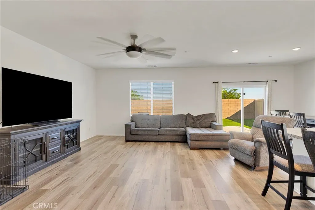WELCOME TO THIS STUNNING NEWER BUILD IN ADELANTO. THE HOME HAS 3 BEDROOMS + AN ADDITIONAL ROOM FOR A 4TH BEDROOM/PLAYROOM OR OFFICE. THE BACKYARD HAS NEW TURF AND LOTS OF ADDED CONCRETE PERFECT FOR HOSTING OR RELAXING. THE NEIGHBORHOOD IS A QUIET FAMILY FRIENDLY AREA AND CLOSE TO THE 395 FOR COMMUTERS. THE OPEN FLOOR PLAN FLOWS BETWEEN THE LIVING ROOM, DINING AREA AND KITCHEN. IT INCLUDES GORGEOUS WHITE CABINETS, GRANITE COUNTERTOPS AND IS IDEAL FOR LARGE GATHERINGS. THERE IS ALSO A SEPARATE ISLAND FOR SETTING UP FOR FORMAL DINNERS OR EXTRA SEATING. THE HOME IS LIGHT AND BRIGHT WITH NATURAL LIGHTING AND HAS STUNNING WOOD LOOK FLOORING. THE FRONT BEDROOM IS SET AWAY FROM THE REST OF THE HOME PERFECT FOR GUESTS. THE PRIMARY BEDROOM IS SPACIOUS AND OPENS TO THE PRIMARY BATHROOM WITH SEPARATE SOAKING TUB, WALK IN SHOWER AND WALK IN CLOSET. THE HOME HAS PAID SOLAR AS WELL TO HELP WITH KEEPING UTILITY COSTS DOWN. THE STREET ENDS SO NO DRIVE THROUGH TRAFFIC TO ADD TO THE COMFORT OF THE QUIET AREA. DON'T MISS OUT ON THIS ONE!