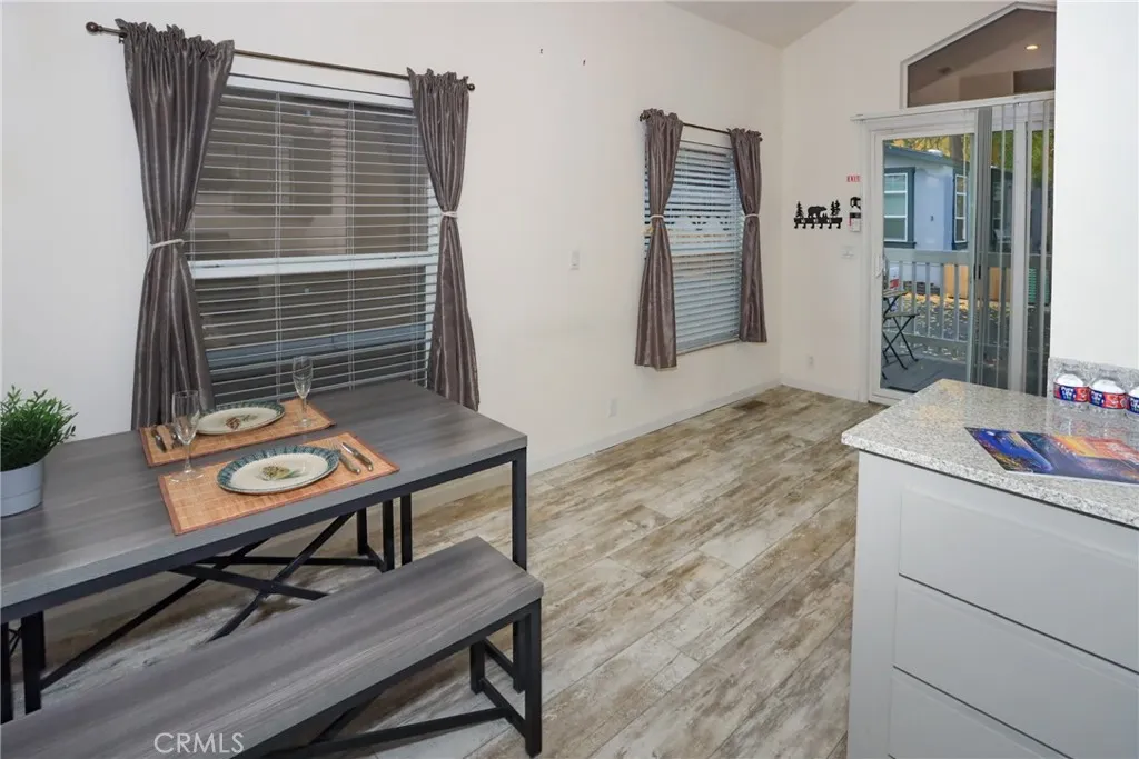 Built in 2023 TINY HOME - Be enchanted by this Newer- built in 2023 Athens Park Series park model tiny home, perfectly nestled just steps away from the picturesque Big Bear Lake. Located at Big Bear Mobile Estates, this charming abode offers one bedroom, one bath and sleeping loft, a perfect haven for restful nights and a lifestyle of tranquility and convenience. The kitchen boasts elegant granite countertops, combining aesthetics and functionality. With stackable washer/dryer, convenience is at your fingertips. The covered front deck invites you to savor your morning coffee amidst nature's beauty. Embrace a resort-style living experience with a plethora of amenities that cater to your comfort and enjoyment. Take a dip in the refreshing swimming pool, and the convenient picnic area with barbecue facilities. New homes and well kept park foster a sense of community. Potential buyers and pets are subject to management approval and no rentals are allowed. Space rent fee is $900 per month.