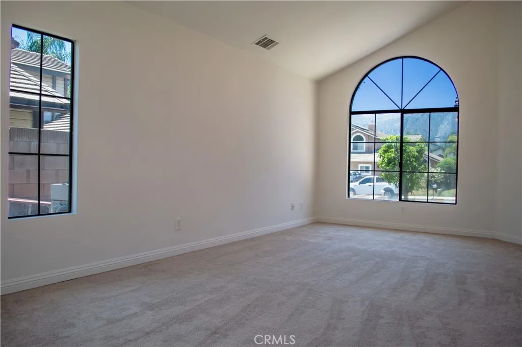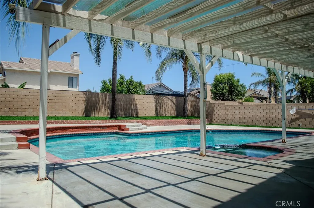 Lake Elsinore Pool Home. 4 bedrooms, 3 bathrooms, approximately 2300 square feet. 3 Car Garage, kitchen has plenty of cabinet space, granite counter tops, tall, vaulted ceilings in living room, family off kitchen has wood burning gas fireplace. Indoor laundry room, Downstairs bedroom and bath. Upstairs there is a Large master bedroom with fireplace, separate tub and shower in the master bathroom. Front bedrooms have a great view of the mountains. Out back there is a good-sized back yard with refreshing pool and spa, large, covered patio. Low maintenance yard in the front, large driveway. Schools and parks are close by, 5 minutes to the Lake.