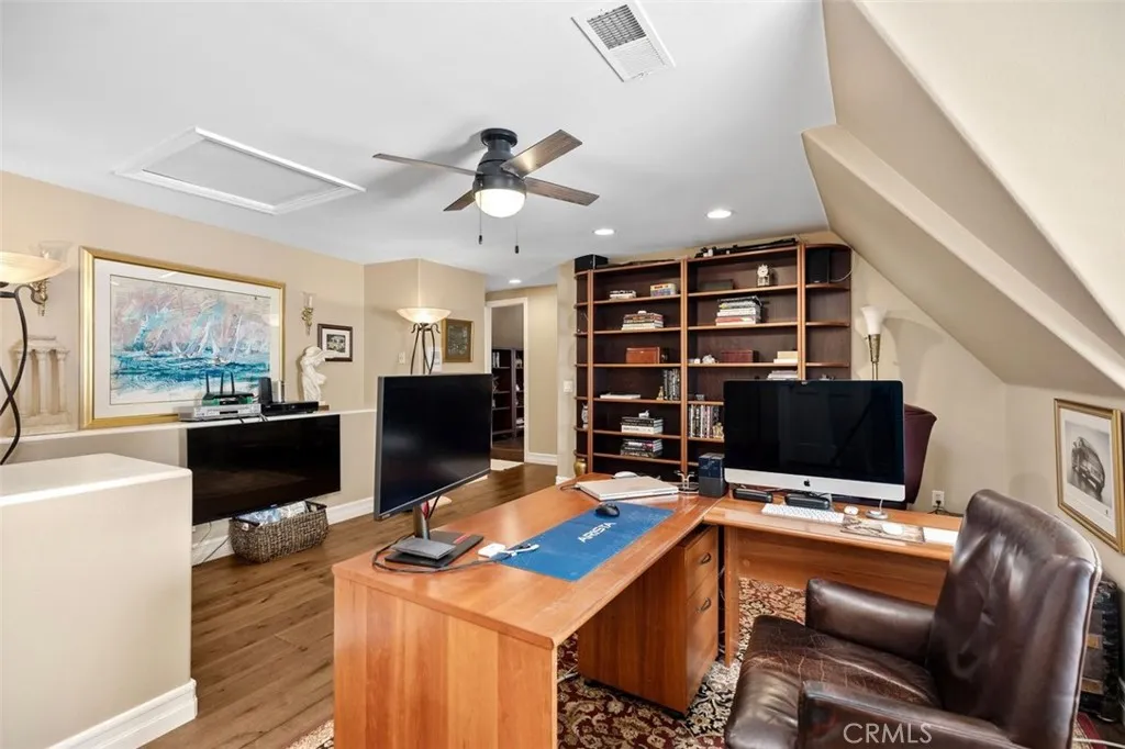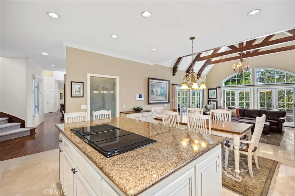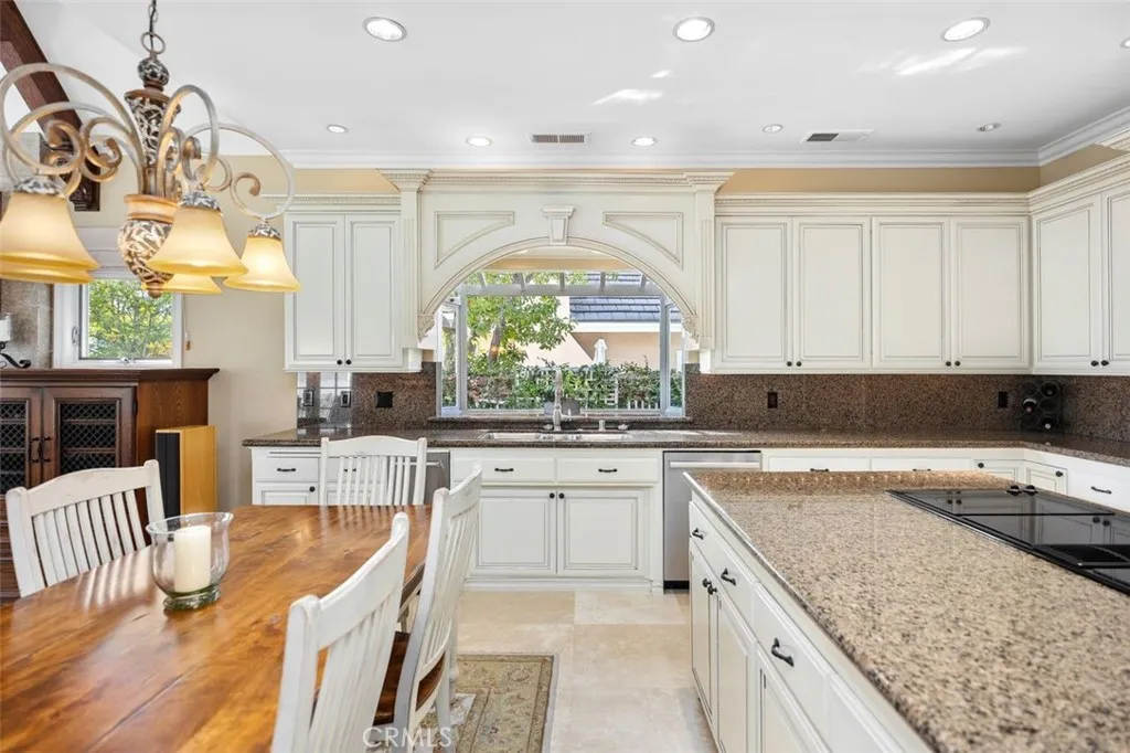 RARE OPPORTUNITY - Situated within the prestigious, guard-gated enclave of Canyon Crest, 22187 Westcliff is a custom home that epitomizes refined elegance and timeless luxury, blended with an inviting warmth that welcomes all. This exceptional estate, set on a serene cul-de-sac, is a rare gem in a community renowned for its resort-style amenities. Striking architecture and manicured grounds, framed by a spacious motor court, create a captivating first impression. Inside, East Coast grandeur blends with Californias coastal charm. Exquisite custom millwork, opulent finishes, travertine floors, and curated details craft a luxurious yet comforting sanctuary. Spanning 4,800 square feet, this home is ideal for multi-generational living. Five spacious bedrooms and 4.5 elegant bathrooms ensure comfort. A private upstairs apartment suitewith a bonus room, kitchenette, full bath, bedroom, walk-in closet, and storageoffers versatility. The primary suite, reached via a graceful circular staircase, is a tranquil retreat rivaling top hotels. A spacious downstairs guest suite with a private ensuite bath and separate entrance adds convenience. Meticulous upgrades shine throughout. The chefs kitchen inspires culinary creativity, while custom bookshelves, wainscoting, tray ceilings in the living room, and beamed ceilings in the family room elevate the ambiance. Milgard dual-paned windows and French doors flood the space with light, and paid solar panels generate surplus energy yearly. The oversized three-car garage, with new epoxy flooring, provides ample space. Outside, a remodeled pebble s