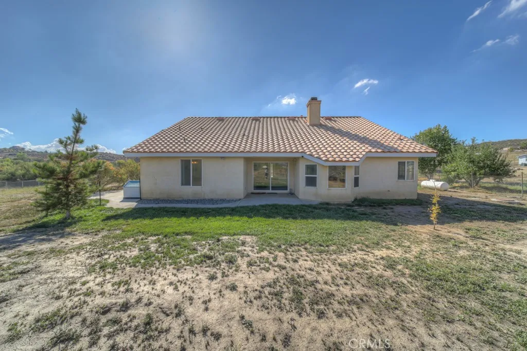 This custom-built home on 2.75 usable acres is located close to the beautiful lake with trails and picnic areas! Lots of room for horses with endless trails directly from your property. This parcel is recently fenced from the house back to the property lines with lots of room for the pups to run! Lawn and planted baby trees with sprinkler system, some mature trees and a long concrete driveway. Lots of space for RV or Boat parking. The home offers 5 bedrooms and 3 bathrooms. One of the bedrooms is separated from the house by the garage and has it's own bathroom and exterior door to the rear yard. There are 4 bedrooms in the main part of the home with the primary wing on one side and the additional 3 bedrooms and full bath off of the hall on the opposite side. The kitchen offers space for a large formal dining table, the living room has a wood burning fireplace and sliding doors leading to a covered porch and rear yard separately wire fenced off for kiddos or pets (or.....). Due to easements, nobody will ever build to the South of this parcel so the back yard feels private and expansive. The Lake Riverside Estates community is a rare gem in So Cal located just 25 min outside of Temecula and offers miles of trails, direct access to national forest trails, private lake, community equestrian arena and round pen, private paved and lighted airstrip, community pool, sports courts and tot lot, and HOA maintained roads. Cal Fire is located within the community. Nearby areas include Temecula Wine Country, Idyllwild, Julian, Borrego Springs and Palm Desert. Truly the last frontier in S