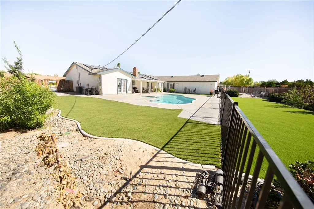 THIS IS THE ONE!!!! Welcome to 14024 Delaware Road, a spacious 3,859 sq. ft. SINGLE-STORY Ranch-style home offering 4 bedrooms and 3 FULL bathrooms, built in 1985 on a large, fully usable and finished lot. This property combines comfort, functionality, and outdoor living at its best. The home features TWO LARGE Primary/Master Suites (***DOUBLE MASTER***) on opposite sides of the home, each with ITS OWN PRIVATE BATHROOM and their own private exterior access with a view of the heated pool and spa. Both include separate showers and soaking tubs, while one suite is LARGE enough to serve as its own potential ADU or easily add an additional room or two (see aerial view of the size of the room), complete with a fireplace, spa-like bath, and private backyard entrance. The open layout offers a formal dining room, living room, and family room, plus a breakfast nook overlooking the pool and spa area. The upgraded kitchen boasts stylish modern countertops, a bar seating area, and an easy flow into the main two living spaces. Enjoy a resort-style backyard with a refreshing in-ground **HEATED** pool and spa, covered patio, designated dog run, and nicely cross-fenced yard areas with fruit trees for added functionality and privacy. The oversized driveway, gated RV access, and street parking provide ample space for vehicles and guests. Additional highlights include solar to help offset utility costs (a HUGE bonus with the pool) and a LARGE laundry room with plenty of storage. PRIME APPLE VALLEY LOCATION: Nestled between Highway 18 and Bear Valley Road, this sought-after neighborhood provide
