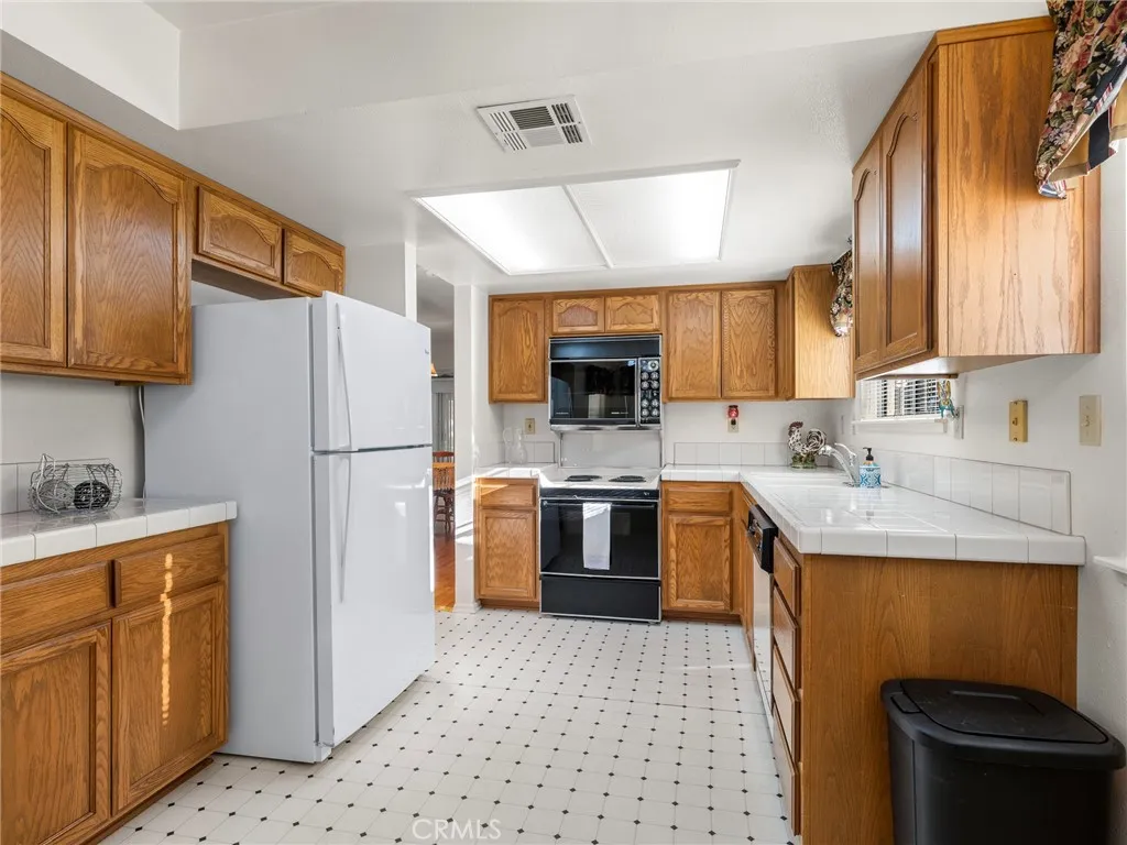 Introducing a charming retreat in the heart of the desirable 55+ senior community of Jess Ranch! This inviting two-bedroom, two-bathroom home offers the perfect blend of comfort and functionality, complete with a spacious two-car garage. Step inside to discover stunning hardwood floors that grace the living room, creating a warm and welcoming atmosphere. The custom window treatments elegantly frame every window, adding a touch of sophistication throughout the home. Enjoy the convenience of an indoor laundry room and a bright country kitchen that flows seamlessly into a separate dining area, perfect for entertaining family and friends. The primary suite is a true sanctuary, featuring a generous walk-in closet and an en-suite bathroom complete with dual sinks, providing both privacy and convenience. Accessibility is prioritized with a ramp at the front door and a thoughtfully designed pathway leading to the main entrance on the side of the home. Outside, unwind on the expansive wood-covered back patio that spans the length of the house, surrounded by lush community greenbelt and trees, offering a serene backdrop for relaxation. Nestled towards the end of a quiet street where it curves, this home provides a peaceful setting while still being close to community amenities. Dont miss the opportunity to make this delightful residence your new home!