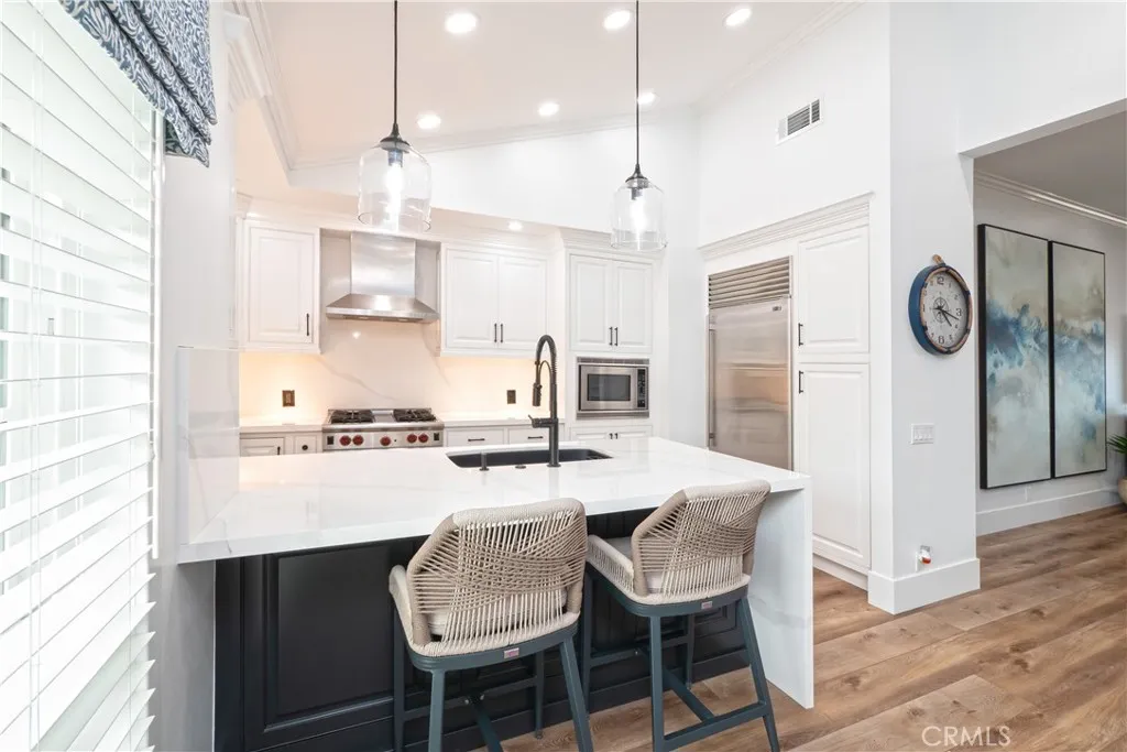 Experience Bayside Cove Luxury Living Settled within the private gates of Bayside Cove, this newly renovated 2,180 square foot, three-bedroom, two-and-a-half-bathroom condominium offers an unparalleled blend of sophistication and comfort. Set in one of Newport Beachs most coveted waterfront communities, it promises an enviable lifestyle where every day feels like a getaway. step inside to discover all-new floating wood laminate flooring, elevating the space with contemporary warmth and style. The heart of the home is the gourmet kitchen, beautifully appointed with quartz countertops and an elite suite of commercial-grade appliances, including a Subzero refrigerator, Wolf range, and Bosch dishwasher. Whether youre hosting friends or preparing a quiet meal, the kitchens thoughtful design inspires culinary creativity. Gather in the cozy living room, anchored by a charming fireplace that invites relaxation and conversation any time of day. Adjacent, a stylish bar area with a built-in wine fridge sets the scene for memorable evenings and effortless entertaining. Each element has been crafted for both comfort and elegance, creating a welcoming haven to call home. Step out onto the expansive viewing deck and let your gaze sweep across the sparkling waters of Beacon Bay. This west-facing vantage point offers front-row seats to breathtaking sunsets and the tranquil beauty of Balboa Island and Newport Harbor. Whether savoring a quiet morning coffee or celebrating with friends, the deck is your gateway to coastal serenity. As a resident of Bayside Cove, youll enjoy exclusive access to