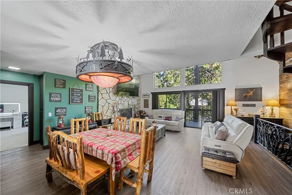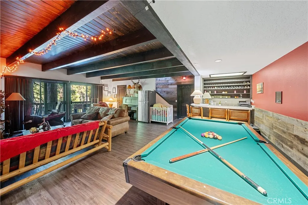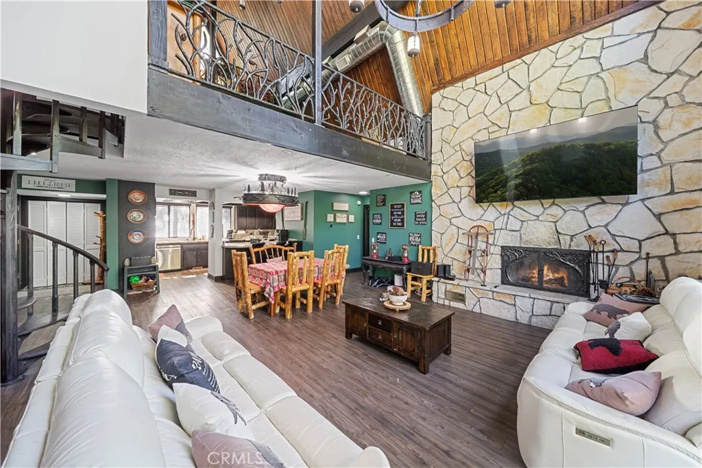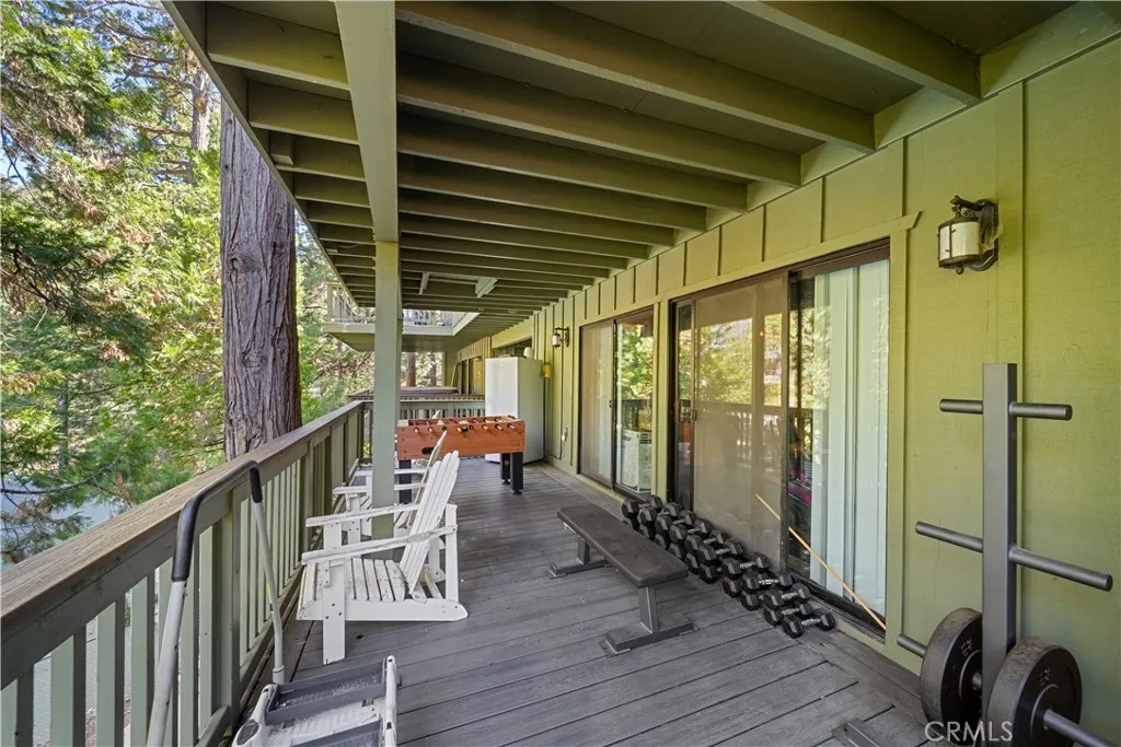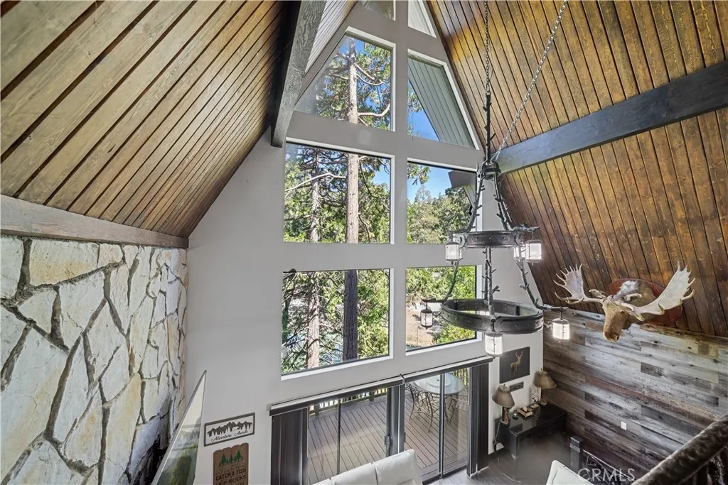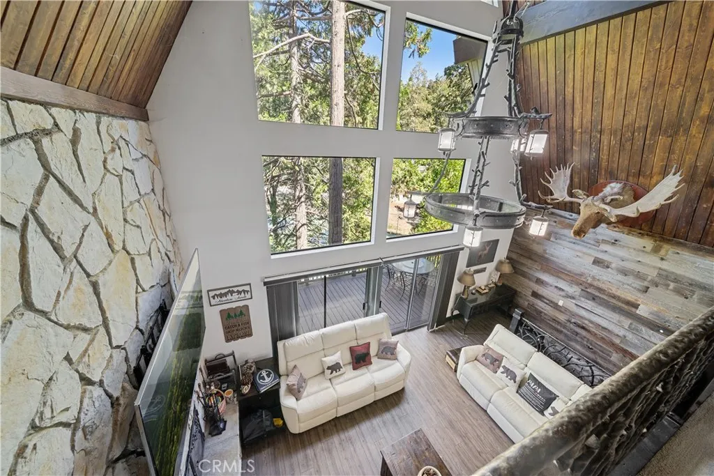 Beautiful Lake Arrowhead Retreat with Lake Rights Welcome to your Lake Arrowhead mountain retreat a place where family traditions are made, holidays are celebrated, and everyday life feels like a getaway. This four-level home offers the perfect balance of comfort and charm, featuring 6 spacious bedrooms and 4.5 bathrooms. Cathedral ceilings, floor-to-ceiling windows, and one-of-a-kind custom-built steel chandeliers create a warm mountain lodge feel, while solid wood doors and wood-grain vinyl plank floors add timeless style. Gather loved ones around the fireplace, host festive holiday dinners, or simply relax and watch the seasons change through the tall glass windows. Step outside to one of two spacious balconies one off the main living room and the other off the family game room with its own bar. With upgraded carpet in every bedroom, custom staircases and railings, and thoughtful design throughout, this home is ready for both quiet mornings and joyful celebrations. Located within walking distance of the Lake Arrowhead Country Club, youll have the option to enjoy golf, tennis, swimming, and pickleball. And with full lake rights, summer days on the water are yours to enjoy. The Country Club Villas Association HOA makes mountain living easy with snow removal, lighting, road and common area maintenance, plus trash service. Whether youre looking for a weekend escape or a forever home, this property offers the chance to create lifelong memories in the heart of Lake Arrowhead.