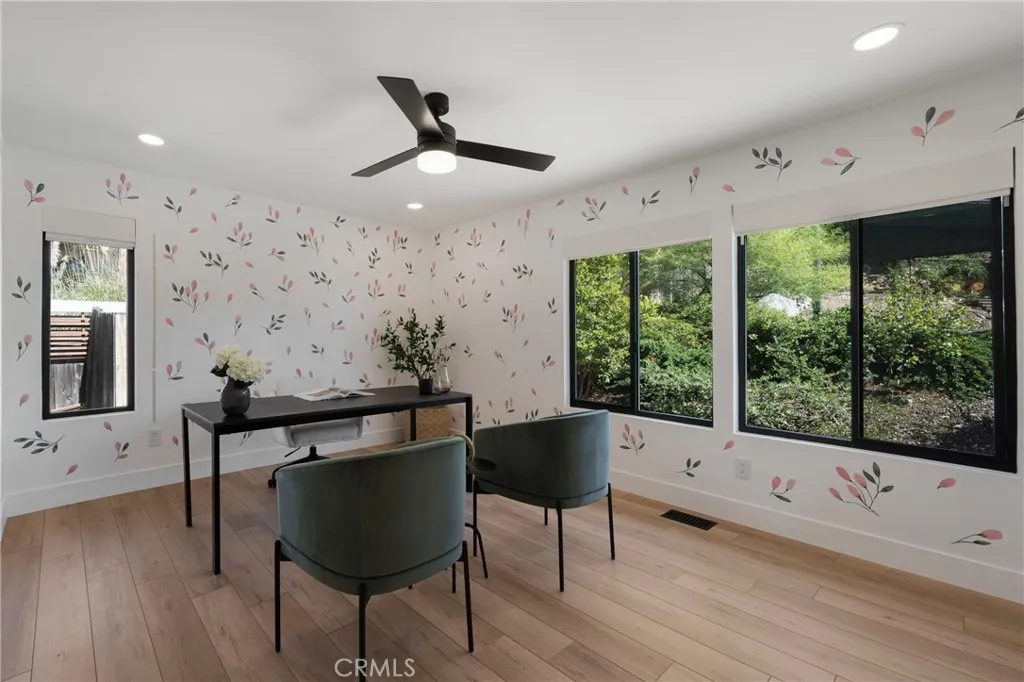 Single-Level Remodeled residence with 4-bedrooms, 3.5 bathrooms and 3,591 sq. ft. of living space on a 0.62-acre lot. Built in 1980 and remodeled in 2021 with over $1M in upgrades. Interior improvements: 30-foot structural beam, custom walnut cabinetry, Italian stonework, hardwood flooring, Thermador refrigerator, 5-in-1 oven/microwave, custom vent hood, CNC walnut hardware. Bathrooms updated with tile, rain shower heads, and pool-accessible powder room. Staircase with slat wall design, electric fireplaces, hidden bookshelf storage, upgraded wiring, plumbing, HVAC, and drywall. Exterior improvements: tile roof, Milgard windows and doors, photovoltaic solar system (paid off), Tesla charger in 3-car garage. Landscaping includes native plants, fruit trees, and stone planters. Backyard improvements: pebble-tech saltwater pool with solar heating, shade sails, basketball/pickleball court, expanded driveway, aluminum railings, sauna, turf pad, gazebo. Lot provides space for a possible Accessory Dwelling Unit (ADU), subject to local regulations. Location near parks, recreation, shopping, dining, and major transportation routes.