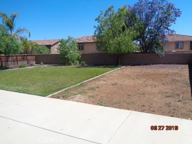 Charming 3-Bedroom Home on a Huge Lot in the Sagemore Community of Menifee! Welcome to this wonderful 3 bedroom, 2 bathroom starter home perfectly situated in the highly desirable Sagemore community of Menifee. With an open-concept layout and an oversized lot, this property offers both comfort and room to grow! Interior Highlights: Spacious open floor plan with high ceilings, recessed lighting, ceiling fans, raised panel doors, and neutral paint throughout. Bright kitchen featuring a large center island with bar seating, solid-surface countertops, walk-in pantry, and ample cabinetry for all your storage needs. Inviting great room that combines dining and family areas, complete with direct access to the backyard for easy indoor/outdoor entertaining. Primary suite with plenty of space, walk-in closet, and a private ensuite bathroom. Secondary bedrooms are generously sized, including one with a walk-in closet! The guest bath with tub/shower combo is conveniently located. Outdoor Living: Expansive backyard with full covered patio and ceiling fanperfect for summer barbecues and outdoor gatherings. Huge, fully fenced yard with additional deckingideal for kids, pets, or even adding a pool. Additional Features: Fully finished 2-car garage. Quiet, well-kept neighborhood with community parks. Centrally located near shopping, restaurants, and freeway access for commuters. This home offers the perfect blend of space, style, and convenience. Dont miss your opportunity to own a home with one of the largest lots in the neighborhood! Very low HOA approx $300 per year.