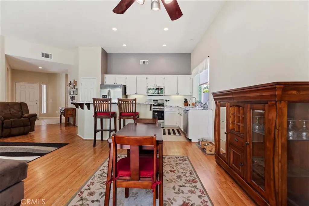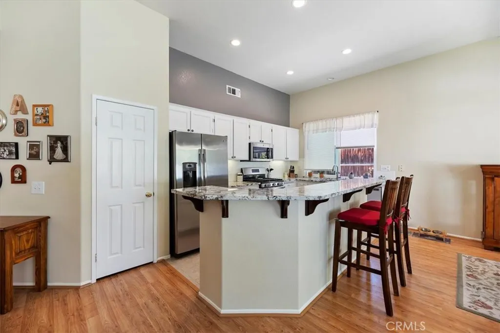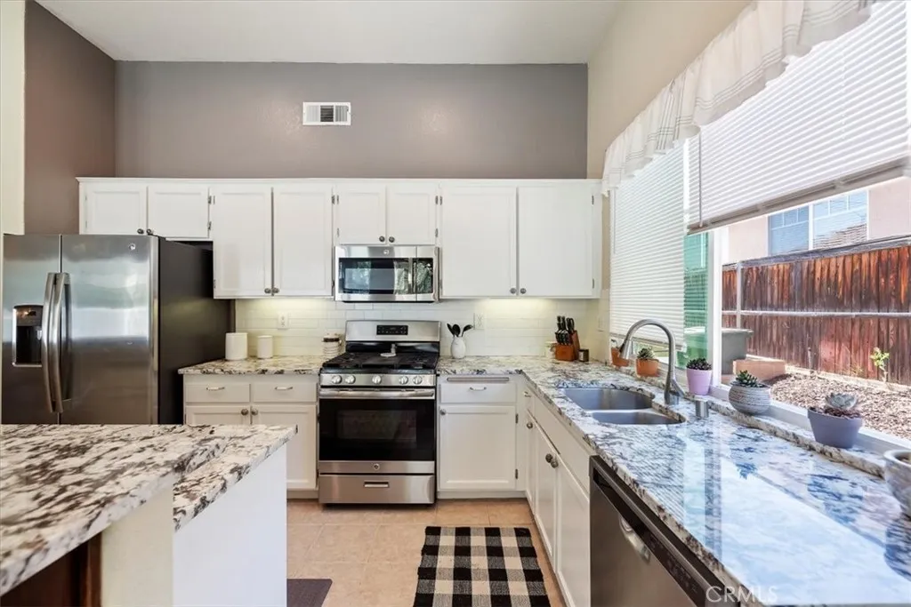 !!!PAID OFF SOLAR!!! Welcome to this beautifully maintained 3-bedroom, 2-bathroom single-story home, in the nestled in a desirable and vibrant Horsethief Canyon neighborhood with top-rated schools just steps away. This inviting residence features a spacious open-concept layout, a bright and airy living area, and a well-appointed kitchen with gorgeous granite counter tops and Stainless Steel appliance, perfect for entertaining or family meals. Enjoy the ease of single-level living with generously sized bedrooms and a serene primary suite with a sliding door for easy backyard access. All windows have been replaced by DUAL PAINE VINYL WINDOWS adding to even more energy efficiency. Step outside to a private backyard retreat, ideal for relaxing or outdoor dining. Very low maintenance yards to free up your weekends! Enjoy all the community has to offer with a very low HOA and no mello roos tax. Located in a well-established community offering fantastic amenities including a sparkling community pool, multiple sports courts, and club house. Whether you're enjoying an active lifestyle or seeking a family-friendly environment, this neighborhood has it all! Dont miss your chance to make this wonderful home yoursschedule your showing today!