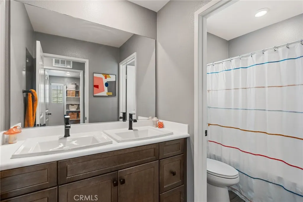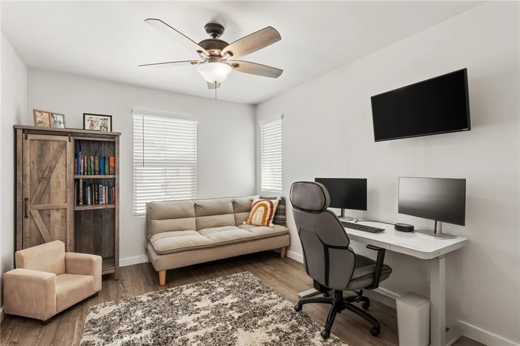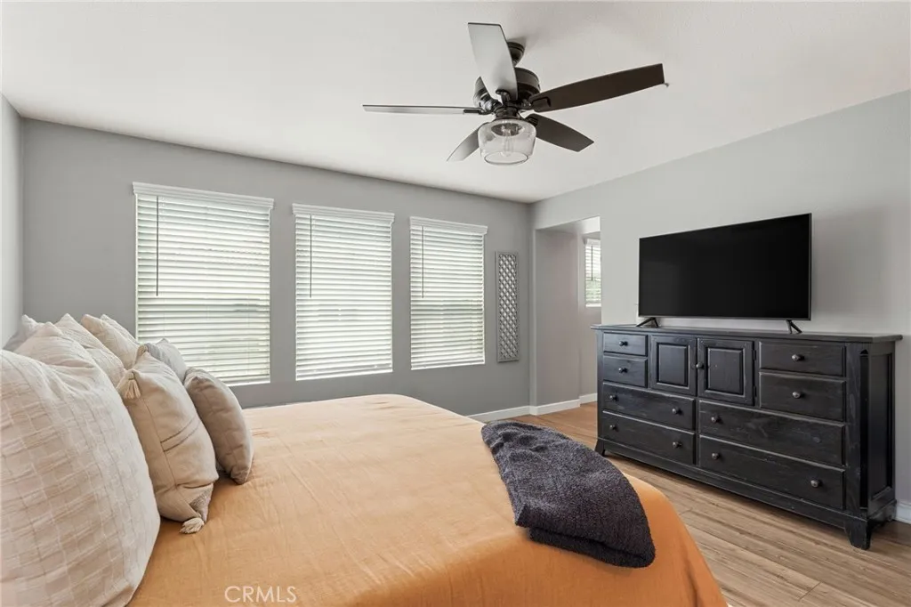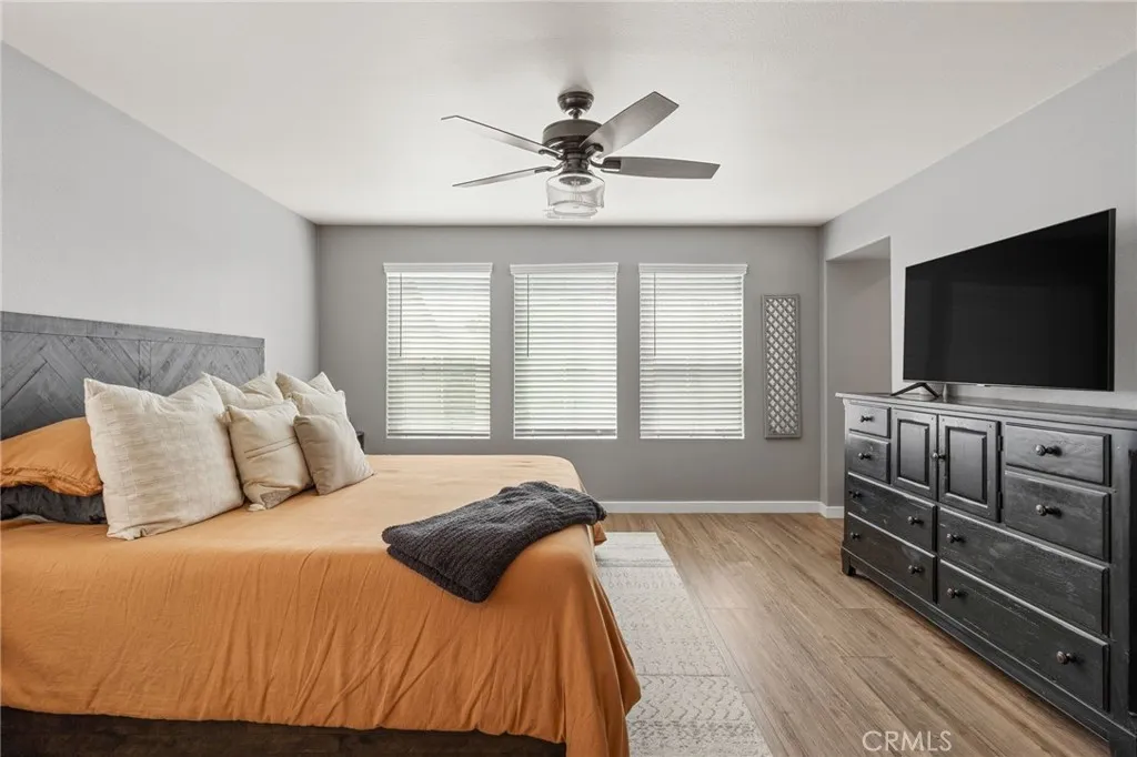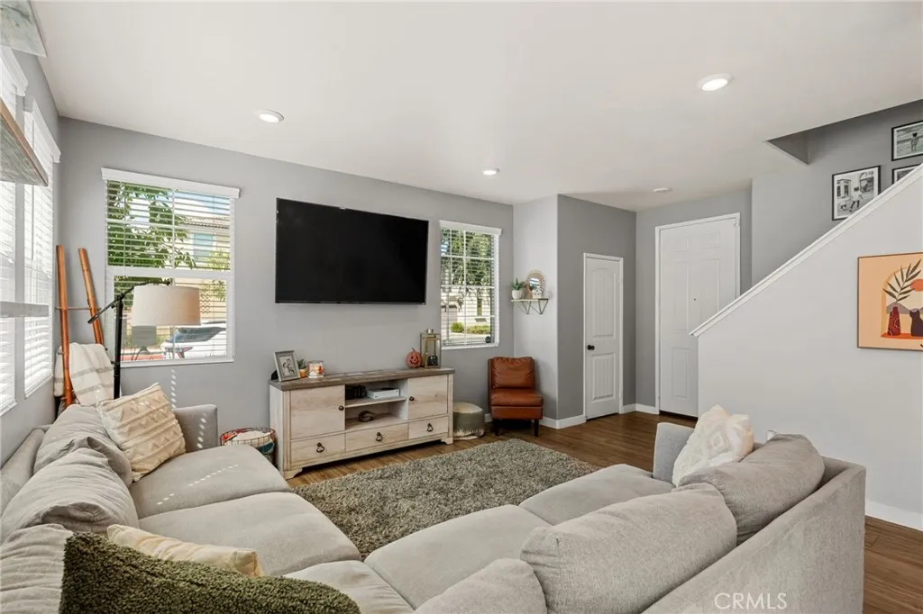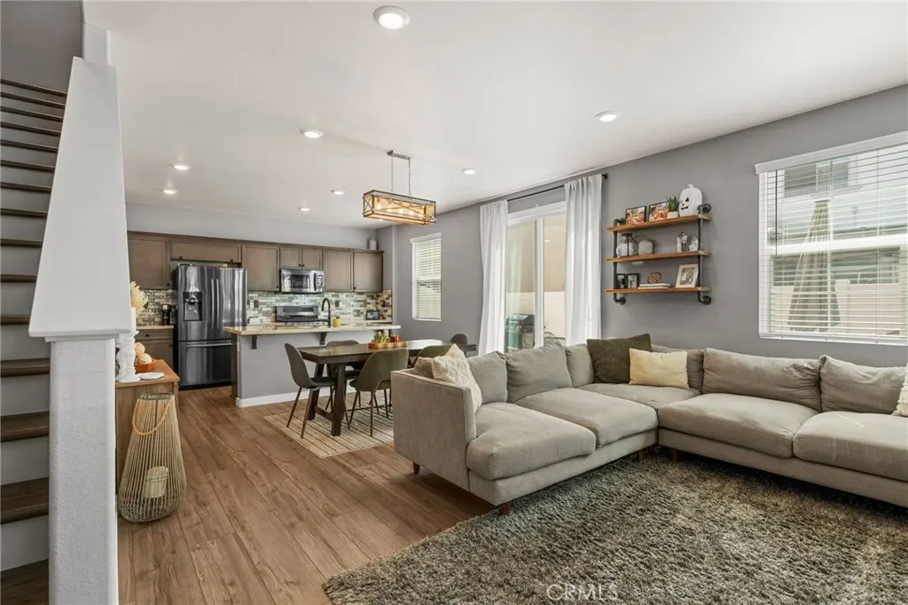 Beautifully upgraded SFR in the heart of Menifee Town Center, featuring parks, pool, clubhouse, walking and biking trails, close to dining and shopping, LOCATION LOCATION LOCATION!! Designer features with LVP floors throughout (NO CARPET) 4 inch base boards, two tone interior paint. The main level offers an open concept kitchen, dining and living room layout. The kitchen features custom (not builder grade) quartz counters, black granite single basin sink, custom subway tile backsplash, upgraded black stainless steel appliances, and matte black cabinet hardware. Powder bath completes the 1st floor. The secondary level offers a spacious primary suite w/ceiling fan, primary en-suite w/dual sinks, upgraded matte black faucets and fixtures, complemented by an oversize walk-in closet. The large secondary bedrooms share a hallway bath with dual sinks and a separate shower/tub area. The laundry room also features a large amount of linen storage. Whole house fan for energy efficient cooling, garage features overhead storage racks, tankless water heater. Backyard patio with turf area, end home so lots of natural light comes in and private yard space, complex has ample parking options. BONUS ** SOLAR HAS BEEN PRE PAID UNTIL 2040** that's right no solar lease payments until 2040!