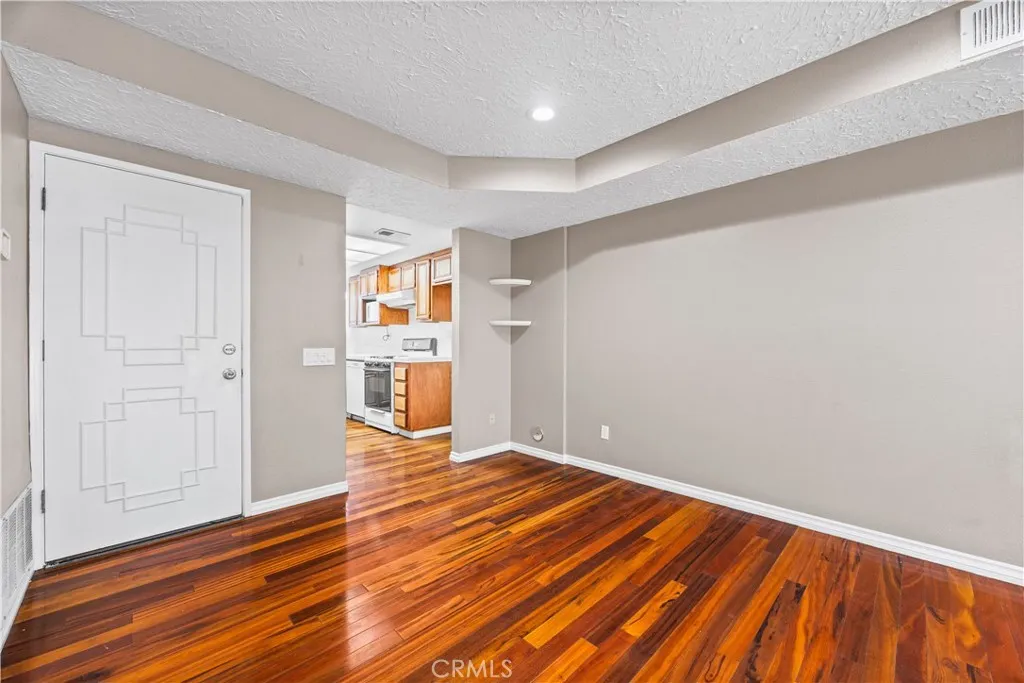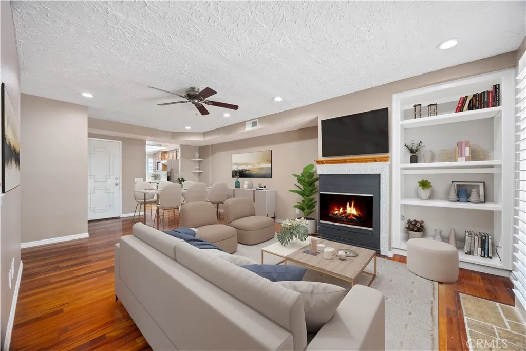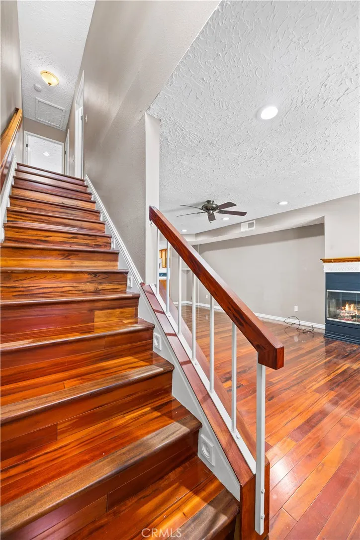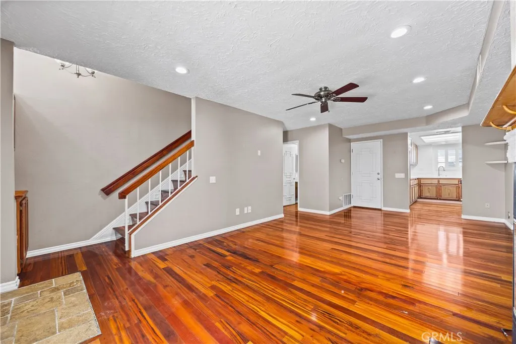 Welcome to Vintage Townhomes, ideally located off historic Route 66 in Rancho Cucamonga. This charming 2 bedroom, 3 bath townhome offers 989 sq. ft. of living space with thoughtful upgrades throughout. Enjoy a cozy living room with a custom fireplace mantle, stunning Bellawood Brazilian Koa hardwood floors. A private front covered patio, attached one-car garage and additional parking space add everyday convenience. HOA Community amenities include a sparkling pool & spa, walkways, a clubhouse, and well-kept grounds. Just 1-4 miles from shopping, dining, grocery stores, and the Route 66 trailhead, this home offers both comfort and lifestyle. Within 6 miles to freeway access, 10, 15, and 210.
