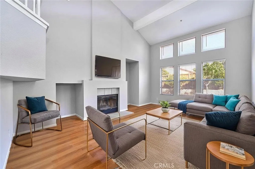 Welcome to Stonegate, one of Riverside's most desirable gated communities! This beautifully maintained 3-bedroom + loft, 2.5-bathroom home offers the perfect blend of comfort, style, and convenience. Step inside to soaring high ceilings that create a bright and airy atmosphere. The spacious family room features a cozy fireplace, while the updated kitchen boasts quartz countertops, rich wood cabinetry, and plenty of storage. Upstairs, a versatile loft adds extra space for an office, playroom, or lounge. The home has been freshly painted and features laminate wood flooring throughout. Enjoy a private backyard with mature fruit trees ideal for relaxing or entertaining. This home includes an attached 2-car garage. Stonegate is known for its peaceful setting and beautifully maintained surroundings, all while being close to shopping, dining, parks, schools, and freeway access. Don't miss this rare opportunity to own a stunning home in a prime Riverside location!