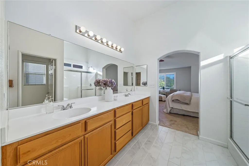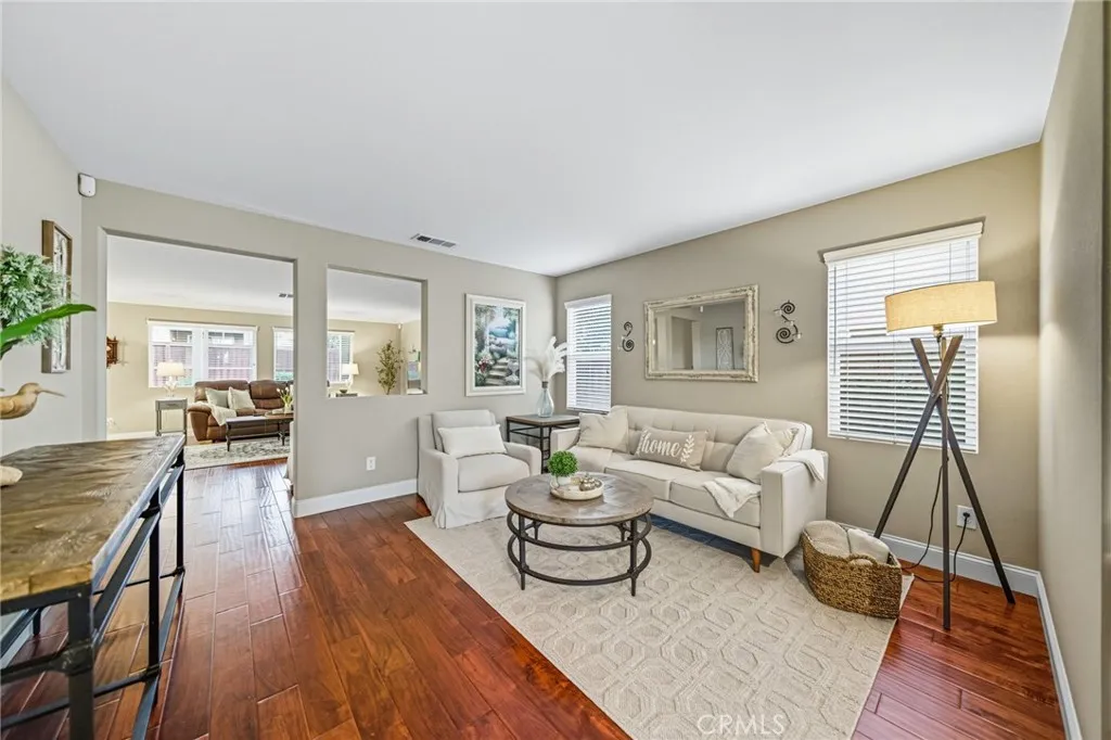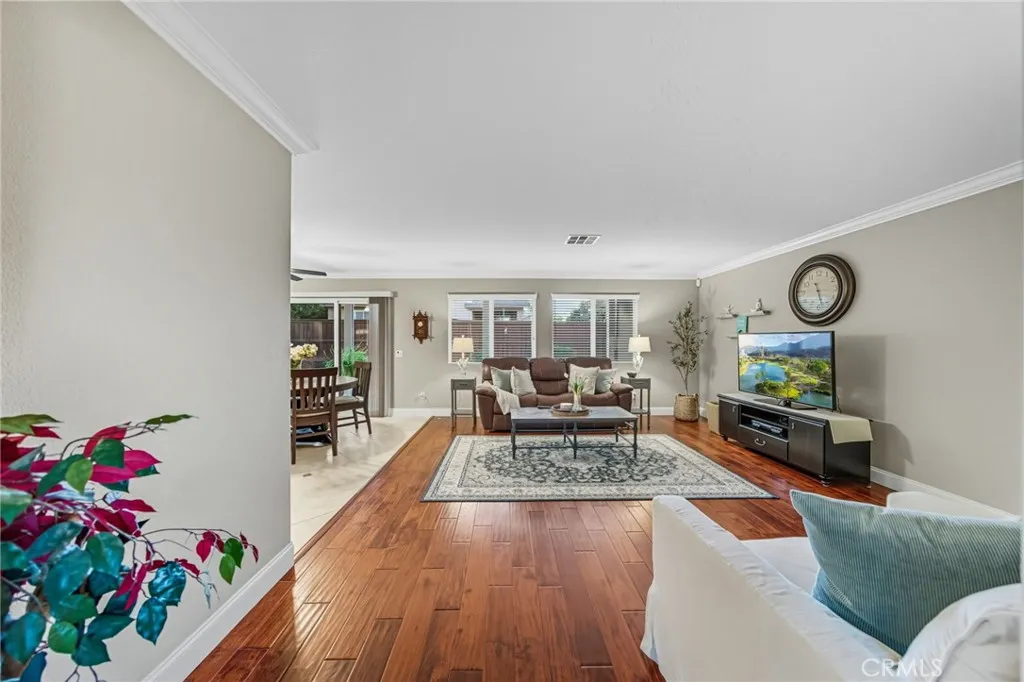 Welcome to this beautifully cared-for 3 bedroom, 3 bathroom two-story home in the desirable Rancho Bella Vista neighborhood. Owned and lovingly maintained by the original owners, this home shines with pride of ownership and thoughtful updates throughout. Inside, youll find a bright and inviting layout with wood flooring, crown molding in the living room, plantation shutters in the primary bedroom, all new baseboards, and fresh interior paint. The downstairs powder room has been refreshed with a new vanity, light fixture, and mirror. Additional updates include new toilets, new bathroom flooring, and a recently replaced HVAC system and air conditioner for year-round comfort. The exterior is freshly painted and enhanced with new windows, sliding door, and new screens, plus a covered patio with privacy screensperfect for relaxing or entertaining. The garage is outfitted with suspended storage racks, offering plenty of organization for an active lifestyle. This home is ideally located within the highly rated Murrieta School Districtless than a block from the elementary school and walking distance to the middle school, sports park, playground, and the community recreation center. Dont miss this chance to own a turn-key home in one of Murrietas most sought-after neighborhoods!