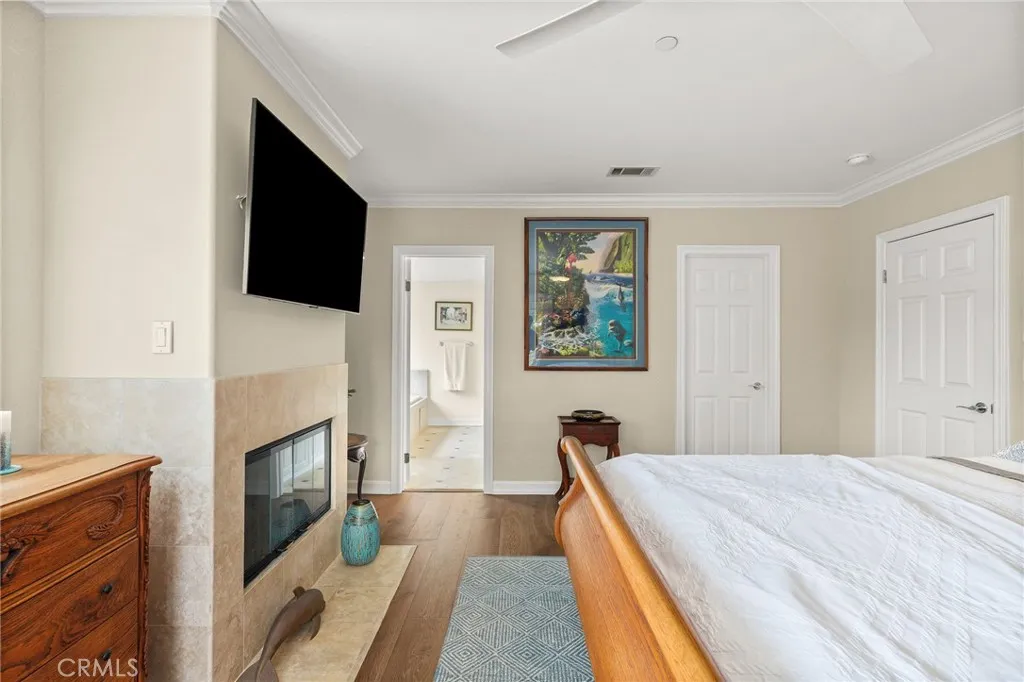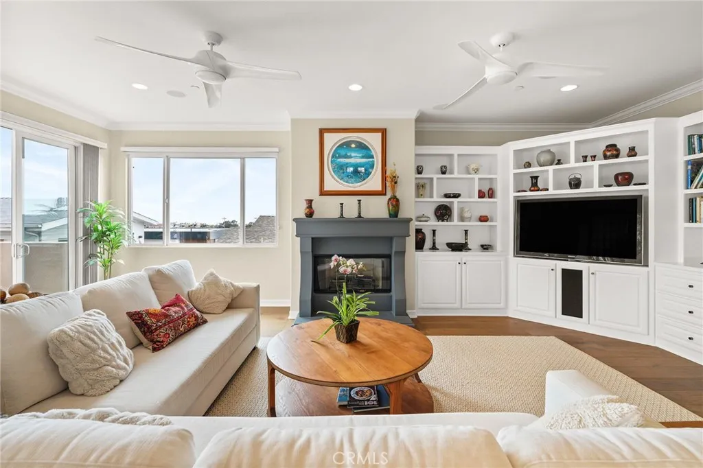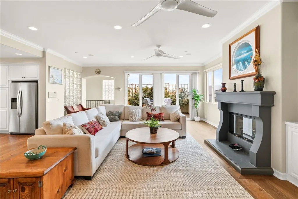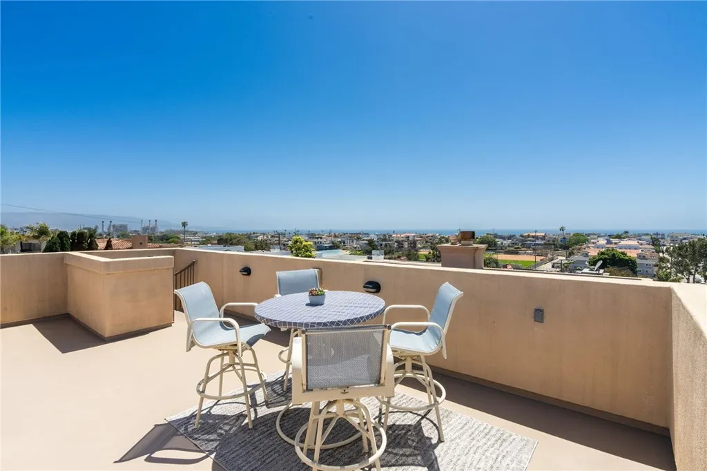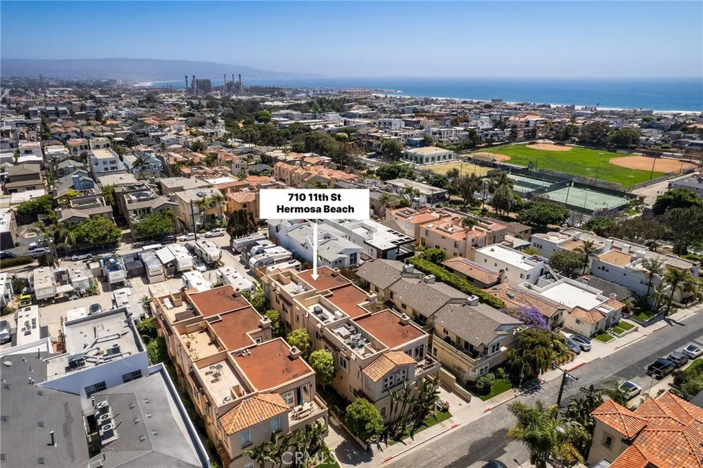 Welcome to this gorgeous OCEAN VIEW 3 bedroom, 2 bathroom townhome with 3 outdoor decks located in the heart of Hermosa Beach. The upstairs living area features a spacious open floor plan with ocean views, cozy fireplace, hard wood flooring, a spacious living room, dining area. kitchen and guest bathroom. The kitchen has granite counter tops, stainless steel appliances, double ovens, cook top and peninsula with countertop seating. Enjoy the ocean breezes from the living room that leads to one of the ocean view decks perfect for entertaining and outdoor dining. From this level a staircase leads to a private rooftop deck with stunning panoramic views. On the entry level you will find 2 spacious bedrooms with ample closet space and the primary bedroom. The primary bedroom has two walk-in closets, private balcony, fireplace and a large ensuite bathroom with a double vanity. All the bedrooms feature hardwood flooring. The lower level offers flexibility with an additional room for a home office, gym, or playroom. On this level you will find a laundry room and storage closet and direct access to the oversized 2 car garage with plenty of room for additional storage. This back unit townhome offers an additional off-street driveway parking spot . Conveniently located and just a short distance to the greenbelt, South Park, Hermosa Valley School, shopping, coffee shops, grocery stores, numerous downtown restaurants, the beach and bike path.