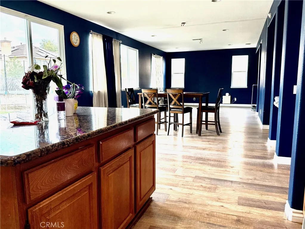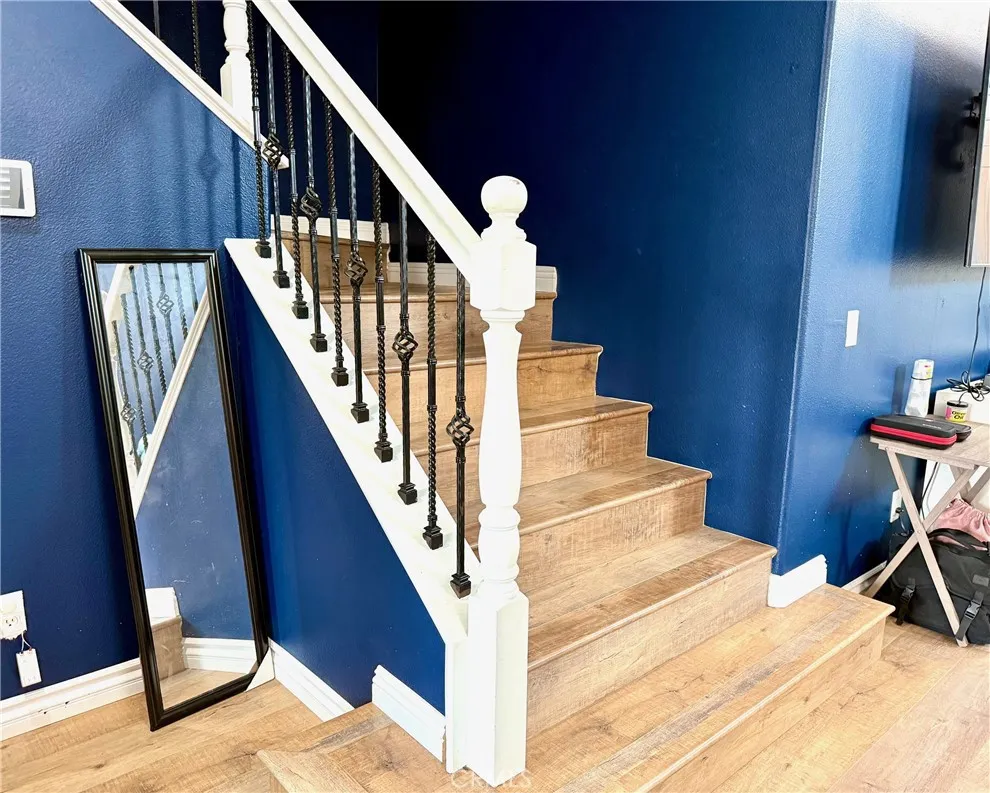 Welcome to this beautiful two-story home offering 2,903 sq. ft. of spacious living. Featuring 4 bedrooms, 3 bathrooms, and a huge upstairs bonus room. This home is designed for both comfort and style. The inviting living room showcases high ceilings, giving it lots of natural light, plantation shutters and a stunning staircase with wrought iron details, leading to the upstairs bedrooms. Upgraded laminate flooring and baseboards flow throughout the home, adding a modern touch. The heart of the home is the expansive kitchen, complete with an abundance of cabinets, a large granite island, a stunning full backsplash, stainless steel appliances, and an open layout that seamlessly connects to the oversized family roomperfect for entertaining. A convenient downstairs laundry room adds to the functionality. Upstairs, youll find the primary bedroom, plus three other bedrooms, and a massive bonus room that can serve as a game room, office, or media center. Cabinets for extra storage right off the hallway. Outside offers a huge backyard with endless possibilities - for gatherings, play, or even a future pool. This home also comes equipped with 32 energy-saving solar panels, at a low monthly payment of $202, and it also offers a full water filtration system. Property is situated close to Ramona Express Way, Shopping, Schools, Soboba Casino and Diamond Valley Lake.