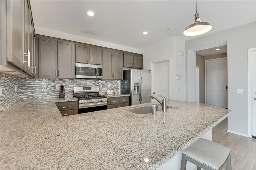 Built in 2018, this tri-level Detached condominium offers 4 bedrooms, 3.5 bathrooms, and approximately 2,101 square feet of living space. The home features a bright and open floor plan with high ceilings, recessed lighting, and modern finishes throughout. The kitchen is designed with granite countertops, a center island, walk-in pantry, and stainless steel appliances. The primary suite includes a spacious bathroom with dual sinks, a soaking tub, separate shower, and a walk-in closet. Additional bedrooms provide flexibility for family, guests, or a home office. Highlights include a first-floor entry, multiple balconies, central heating and air conditioning, and a 2-car attached garage with direct access. Located within a desirable Jurupa Valley community, the property is close to parks, schools, shopping, dining, and offers convenient access to the 60 Freeway.