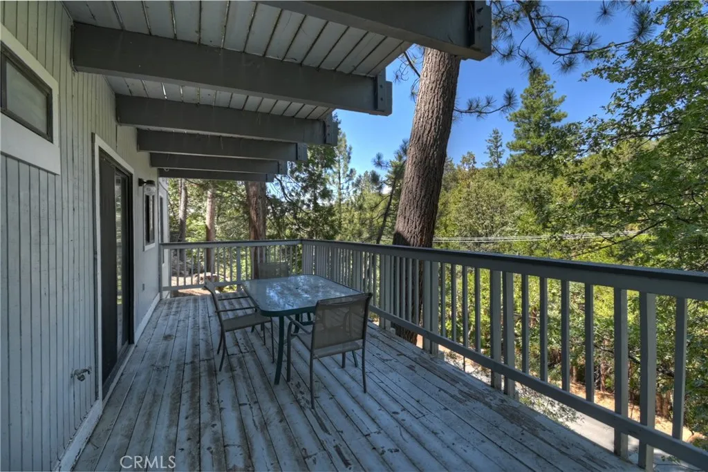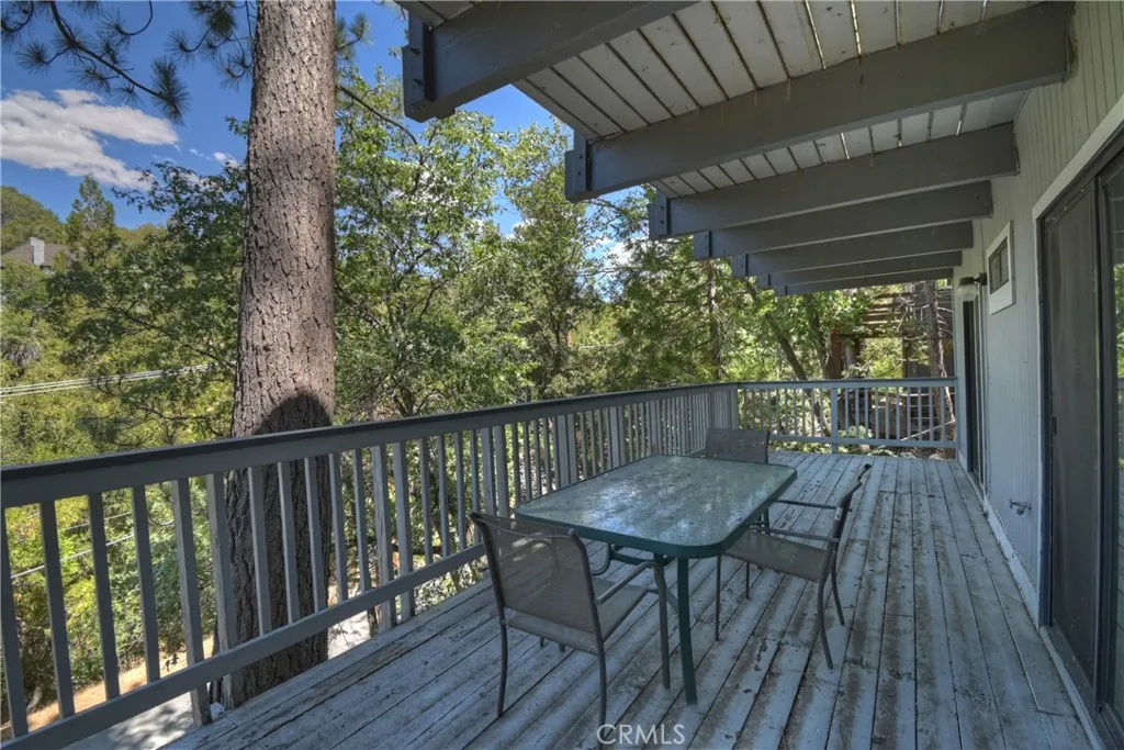 !!!Mountain Retreat with Lake Rights in Arrowhead Woods!!! Discover the perfect mountain getaway in the coveted Arrowhead Woods community, complete with exclusive lake rights that provide access to pristine Lake Arrowhead. This thoughtfully updated home offers the ideal blend of rustic charm and modern convenience across three well-designed levels. The main level welcomes you with a warm and inviting living room anchored by a striking river rock fireplace, creating the perfect gathering space for family and friends. The open flow continues into the dining area and breakfast bar, making entertaining effortless. The updated kitchen features a convenient pantry for all your storage needs, while a comfortable bedroom and full bathroom complete this level. Step out onto the back deck to soak in the serene forested views that provide privacy and tranquility. Ascend to the top level where two generously sized bedrooms await, each featuring impressive high beamed ceilings that add architectural interest and a sense of spaciousness. A full bathroom serves this level, ensuring comfort and convenience for family and guests alike. The versatile bottom level expands your living space with a fantastic game room complete with its own rock fireplace, perfect for cozy evenings or entertaining. A fourth bedroom and three-quarter bathroom provide additional accommodation options, while the practical laundry room keeps household tasks organized. Another deck access from this level extends your outdoor living opportunities. Parking is never a concern with two separate parking areas that provide