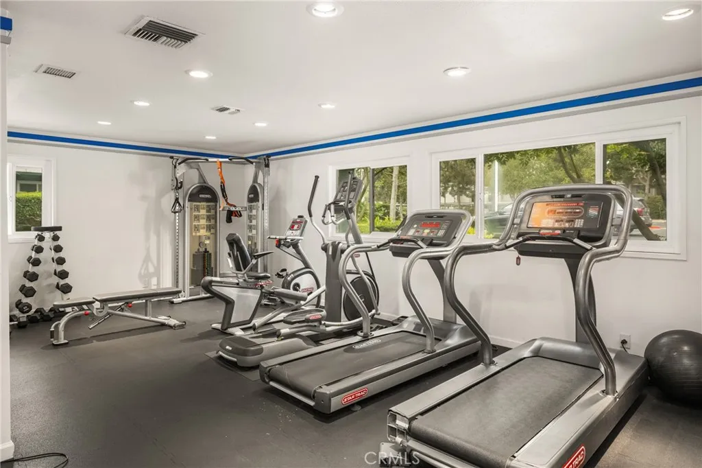 A golfer's DREAM!! Welcome to this charming lower-level, single-story condo in the gated community of Village on the Green. Filled with natural light, this one-bedroom home features a newer kitchen and bathroom, recessed lighting in the kitchen, a convenient desk area in the bedroom, and even a small wine fridge. Fresh paint throughout adds a move-in ready touch. Step outside through the sliding glass door to a spacious private patio, beautifully enclosed with greenery, plus a secure outside storage area. Village on the Green offers resort-style amenities, including a pool, spa, fitness center, and a clubhouse with a billiards table. An outdoor cooking area with barbecues and seating makes it easy to relax and entertain. This home also includes two assigned parking spaces, one of which is covered. HOA dues include water and trash for added convenience. This inviting condo combines comfort, style, and convenienceperfect for everyday living or a relaxing retreat.