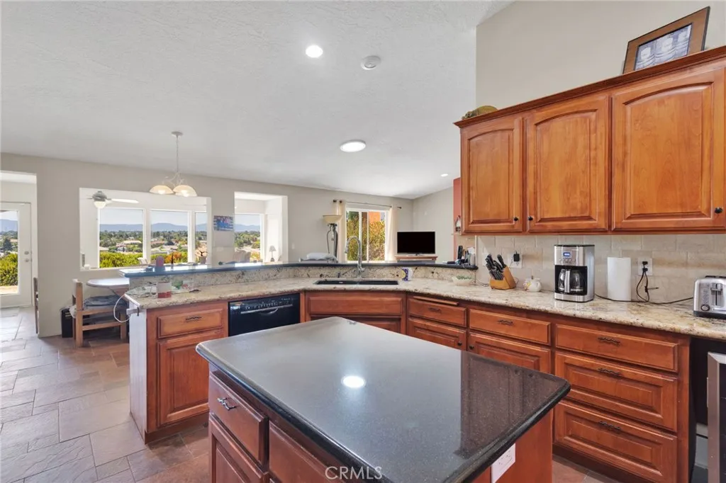 Proudly offered for the first time, this CUSTOM-BUILT homecrafted with care by its original ownersoffers a rare combination of thoughtful DESIGN, FUNCTIONALITY, and BREATHTAKING VIEWS. The property boasts a 2400+ sqft residence that overlooks the Hesperia Golf Course, providing a peaceful backdrop to your everyday life. The well-constructed layout features 3 generously sized bedrooms, each with an ENSUITE BATHROOM and WALK-IN CLOSET, offering both privacy and convenience for every member of the household. A versatile BONUS ROOM can be tailored to your needs, whether as a 4th BEDROOM, a HOME OFFICE, or a FLEXIBLE SPACE for hobbies or guests. The heart of the home is an OPEN-CONCEPT living area, seamlessly connecting the kitchen, dining, and living spacesperfect for entertaining or simply enjoying the flow of daily life. The kitchen is a chefs delight, featuring RICH WOOD CABINETRY, GRANITE COUNTERTOPS, a LARGE ISLAND, a BREAKFAST BAR, and a SPACIOUS PANTRY. Step into the bright and tranquil SUNROOM, where expansive windows frame picturesque views of the backyard and the golf course below, creating an ideal spot to relax and unwind. Various SKYLIGHTS throughout keep the home bright and unique HEATED FLOORING keep temps comfortable all year round. Not one, but TWO extra large UTILITY CLOSETS give plenty of space for storage and organizing. The attached garage is fully finished with enclosed drywall and includes a very functional LAUNDRY AREA equipped with hook ups, storage cabinets, and a utility sink. The landscaping in the front yard includes MATURE FRUIT TREES that are not