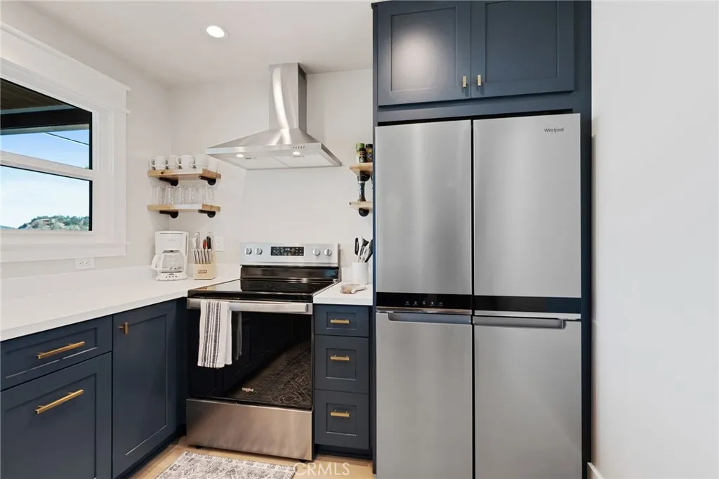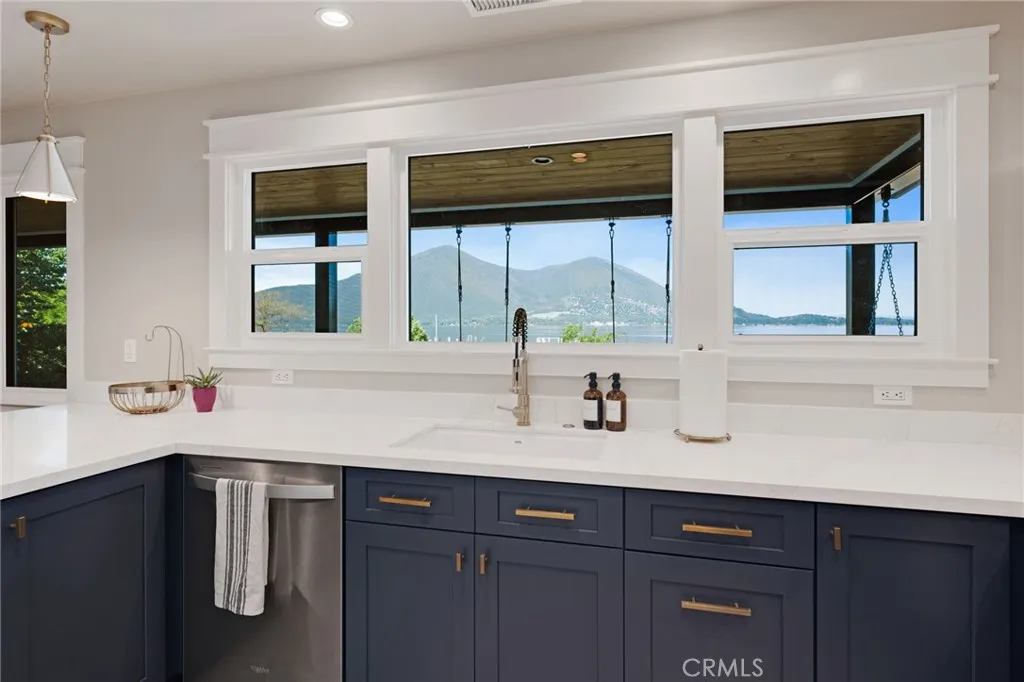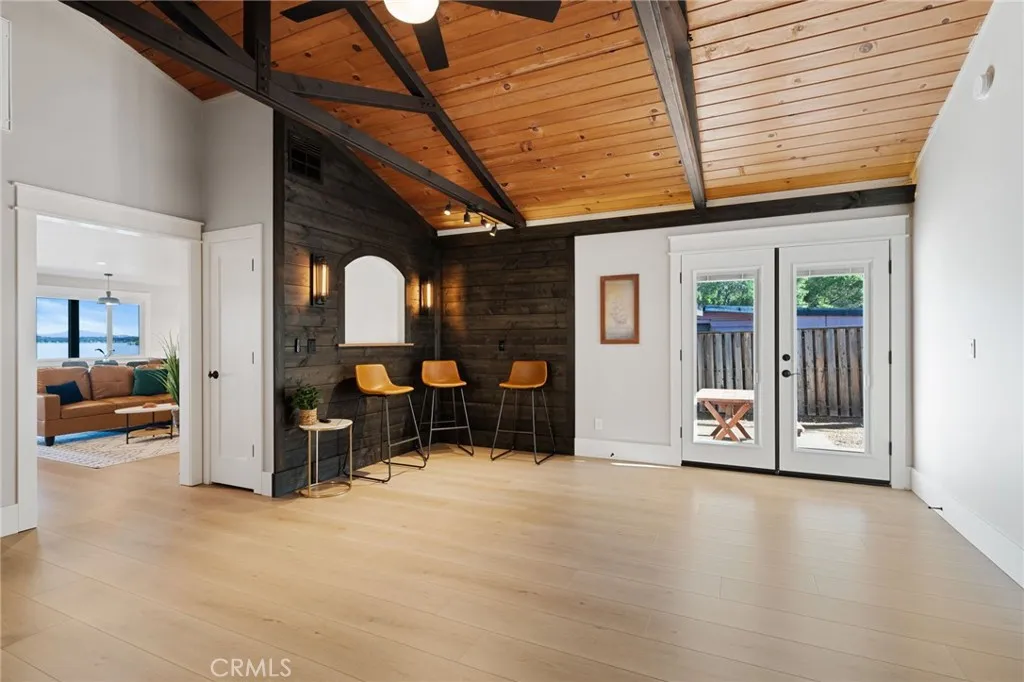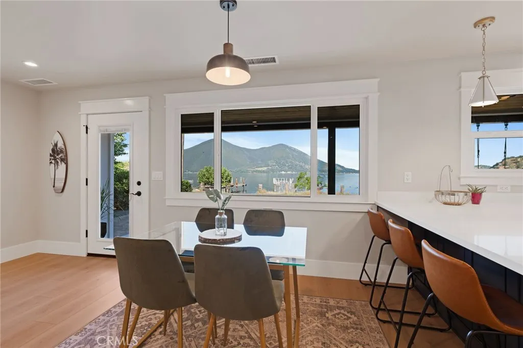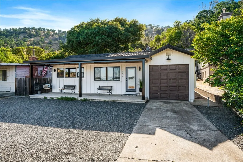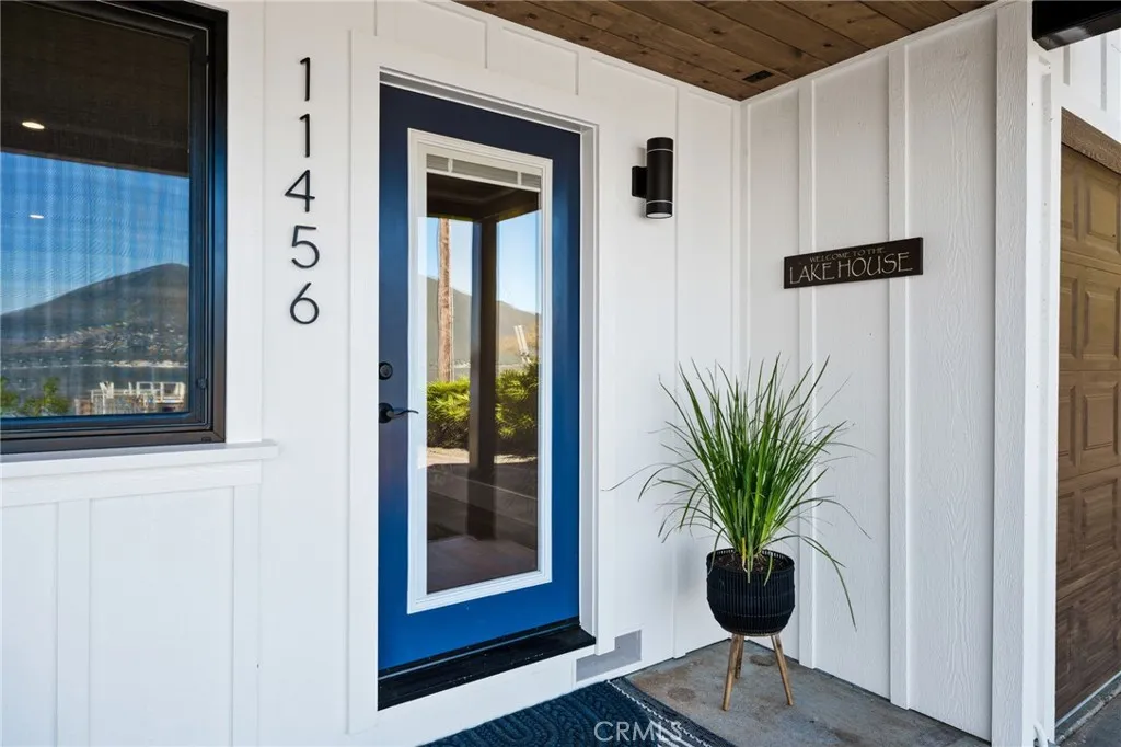 Lake Front Property on Silverado Beach. This home was completely renovated in 2023 to offer a comfortable, functional, modern home on a lake front parcel. Enjoy the Lake Life from this single level home, it offers an open floor plan with the most beautiful views of Clearlake and Mt. Konocti that Lake County has to offer. Everything redone to this home was finished with taste and care. Entire home has new windows, doors, electrical, plumbing, insulation, drywall, floors, cabinetry, lighting, nothing went undone. A welcoming open floor plan greets you immediately, bright and open space for entertaining and enjoying your days. Located off the living are 2 bedrooms, the laundry room and a custom tiled full bathroom. Centrally located in the home is a Bonus Room. This space is wide open, has vaulted beamed ceilings and can be enjoyed as a media room, game room, 2nd living room or used for work or any other hobbies. There is a 1/2 bath located in the bonus room as well as the French doors leading to the back yard. The primary suite is located privately at the rear of the home, through French doors to allow for a Lake View from your bed. This primary suite has vaulted beamed ceiling with a walk-in closet with a vanity area, and a private bathroom. The bathroom has a custom tiled walk-in shower with a seamless shower glass enclosure. The entire home is wrapped in new board and battened siding, seamless gutters, and a metal roof for fire safety. The front porch is the ideal place to enjoy a picturesque sunset, sit on any one of the customs swings and take in all the beauty that Lake
