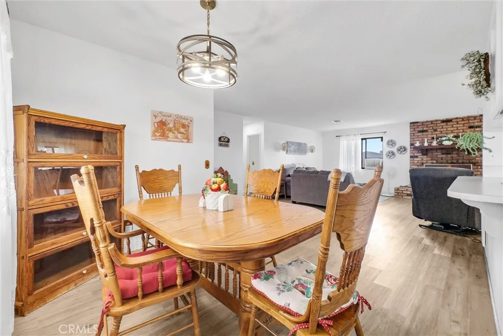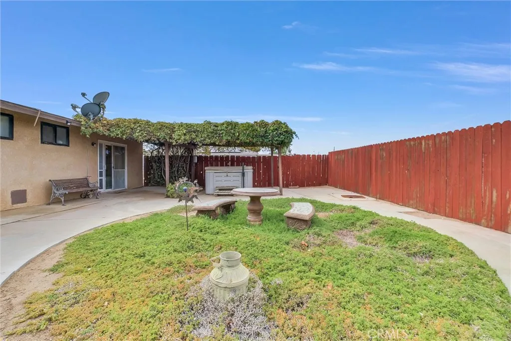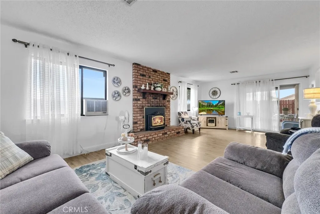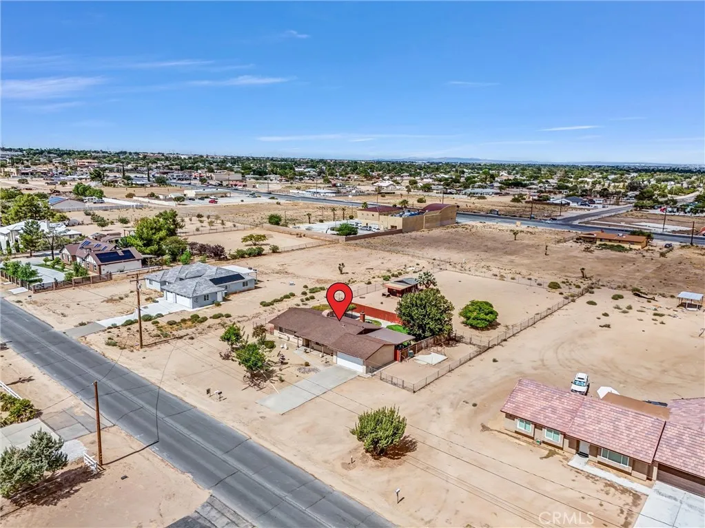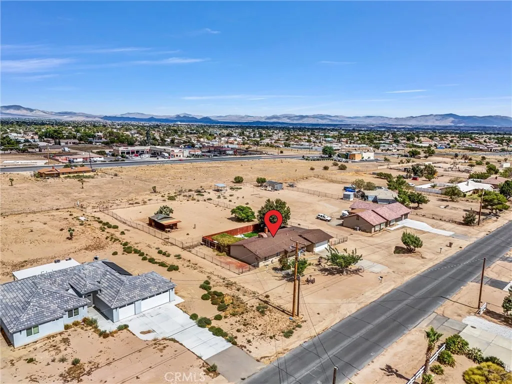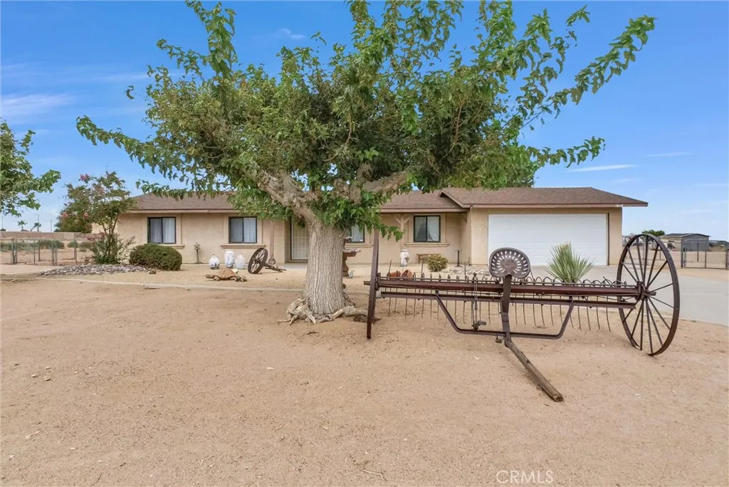 Welcome to your serene ranch retreat in Hesperia, with breathtaking mountain and hill views in every direction! Situated on a flat, sprawling 43,710 sq ft lot, this charming single-story home offers 3 bedrooms, 2 baths, and approximately 1,458 sq ft of living space. From the moment you arrive, the inviting curb appeal shines with an extra-long driveway, rustic Western touches, and a peaceful setting. Step inside to a bright, open floor plan filled with natural light. The living room is the heart of the home, anchored by a large brick fireplace. It flows seamlessly into the dining room, highlighted by a lovely chandelier, and into the spacious family kitchen with freshly painted cabinetry, a breakfast bar, and a brand-new dishwasher. The master suite features direct patio access through sliding doors and a private bath with a walk-in shower. Two additional bedrooms are generously sized and share a full hall bath with a shower-in-tub. Recent updates include fresh paint, upgraded baseboards, ceiling fans throughout, a wall AC unit in the living room, and newer sliding doors. Outdoors, youll find multiple patios designed for relaxation and gatherings. Just off the living room, a covered patio with a ceiling fan creates a breezy, charming space perfect for family get-togethers. The fenced backyard also offers a manicured lawn, mature trees, and a professional irrigation system. A second patio, right off the master bedroom, is beautifully shaded by grapevines. Beyond the fenced yard, the property continues with a barn, chicken coop, and utilities already connected for water and e