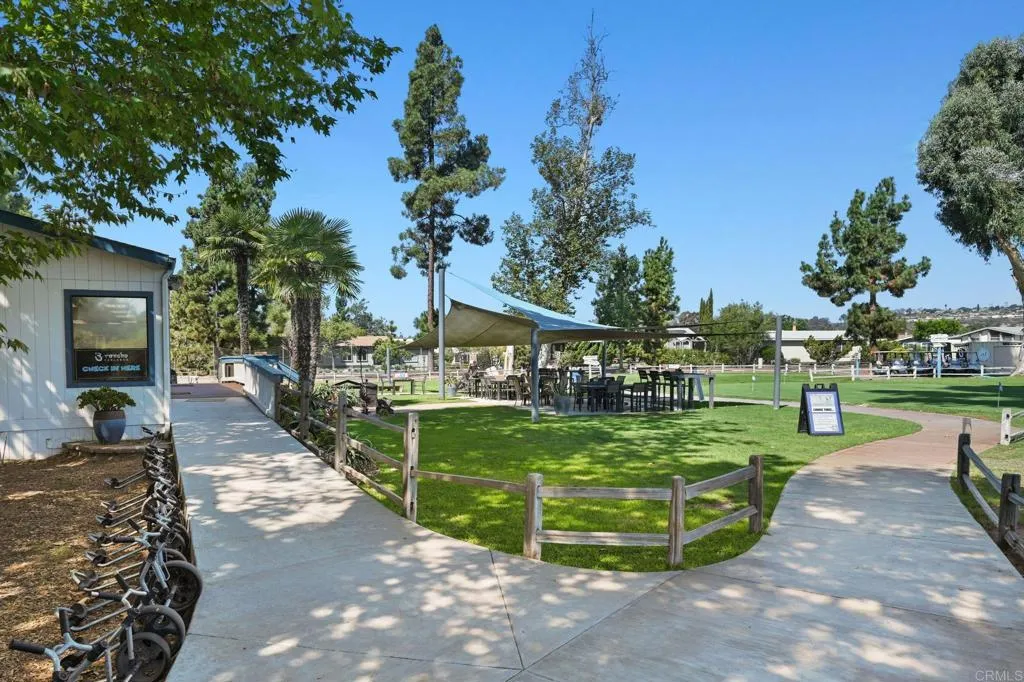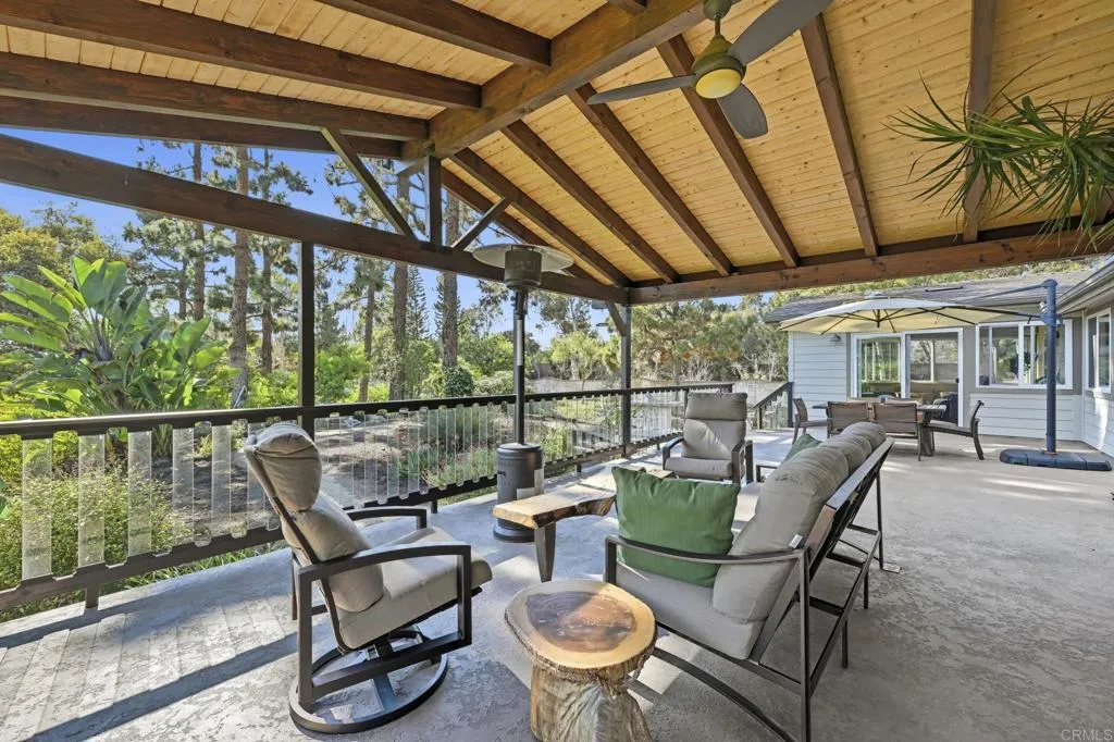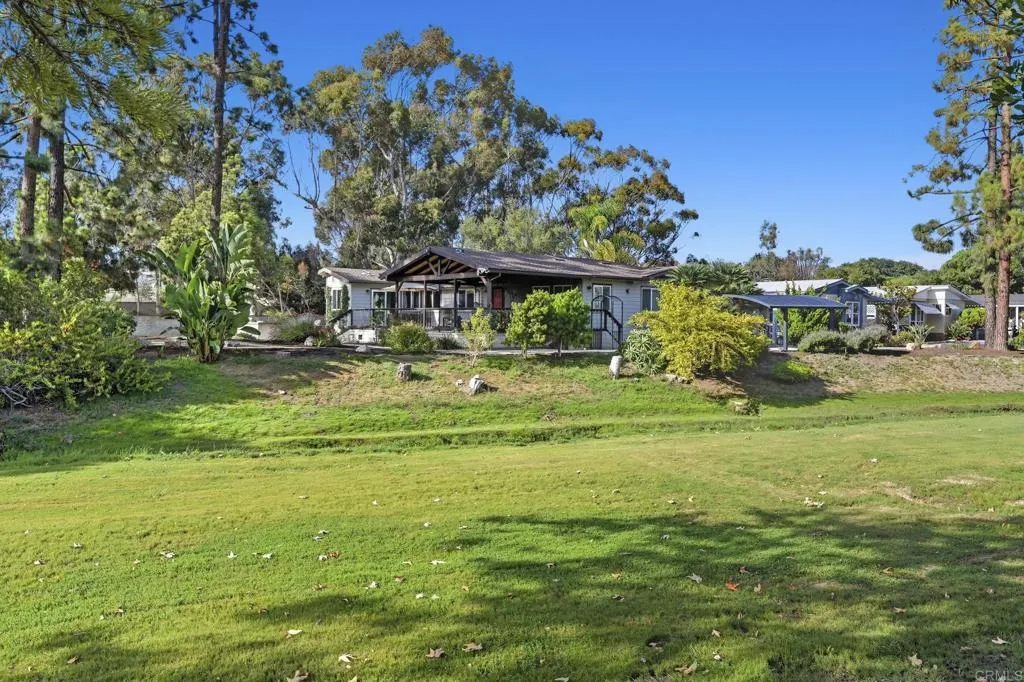 This beautifully remodeled custom manufactured home on a permanent foundation has the best location in the Rancho Carlsbad community. This home is uniquely situated at the very end of a cul-de-sac on a huge lot that offers a beautifully peaceful and very private setting, all while overlooking a picturesque display of nature. Linger on the large front deck as you take in the views of sunsets, gorgeous mature trees, exotic birds, and the Aqua Hedionda Creek and adjacent green belt that runs along side the property. Inside, you'll find a spacious, open floor plan completely remodeled in 2015, offering 2 bedrooms plus a bonus room, vaulted ceilings with large skylights, luxury vinyl plank flooring throughout, a beautiful custom kitchen with designer granite, tons of pantry and cabinet storage, and too many convenient customized details to name. Off to one side of the home you'll find the large primary suite which offers a seemingly endless designer closet, easily accessible shower and luxurious soaking tub. You'll find an extension to the primary suite which provides outdoor access and lots of natural light. -Perfect for spending time lounging, exercising, or enjoying the sunshine. To the other side of the home you'll find an ample sized guest bedroom and bathroom. The third bonus room is light and bright, and perfect for an office space. This home has been thoughtfully designed with a warm color palette, beautiful stone detailed fireplace, large window seats overlooking the picturesque views, and over 2,000 square feet of living space. With an enclosed garage and extra worksho