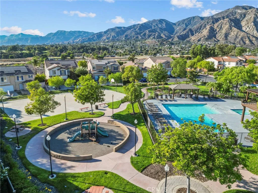 Welcome to 13204 Alta Vista Way, a beautifully upgraded home located in a private gated community in the serene neighborhood of Sylmar. This residence has been thoughtfully updated throughout and offers a perfect balance of style, comfort, and functionality. The modern kitchen features new cabinets and quartz countertops, while the living area showcases a custom stone entertainment wall with LED lighting and a cozy fireplace. Signature bamboo flooring runs throughout both levels, complemented by tile floors in the upstairs bathrooms, an upgraded walk-in closet, new windows, a refreshed downstairs vanity, and new toilets in the kids and guest bathrooms. The homes exterior shines with a refurbished front porch complete with new ceiling fans, upgraded side gates, and a backyard retreat featuring turf, pavers, a covered pergola, a small above-ground pool, and an exterior TVperfect for entertaining or relaxing. Additional highlights include a new garage door opener, a water softener system, and a fully paid-off solar system for energy efficiency. This home also comes equipped with premium stainless steel appliances, including a Whirlpool washer and dryer, Whirlpool dishwasher, Whirlpool microwave, LG refrigerator, and LG stoveall included in the sale, adding even more value and convenience for the next owner. Residents of this private community enjoy resort-style amenities, including a sparkling pool and jacuzzi with panoramic views, a basketball court, a kids playground, and a private park. The neighborhood is quiet, family-friendly, and offers scenic views of the surrounding m