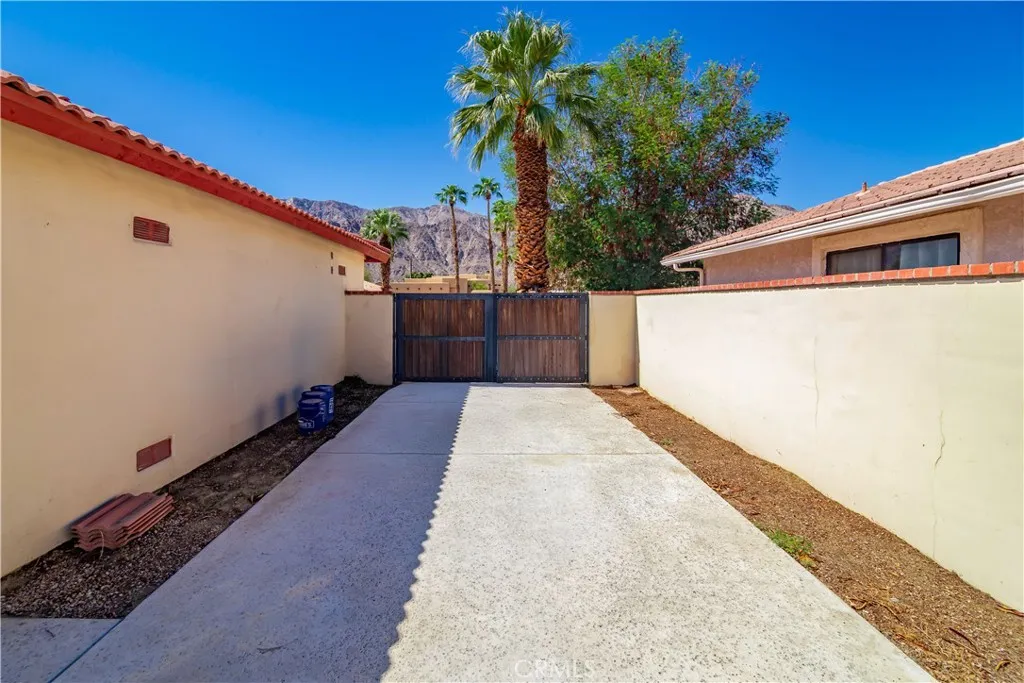 ~PRIVATE OASIS~SITUATED ON DOUBLE LOT WITH 2 STRUCTURES~MAIN HOUSE & GUEST HOUSE ~FULLY REMODELED DESERT RETREAT NEAR LA QUINTA RESORT~This beautifully renovated main home offers three -bedroom, two-bath home sits on a rare double lot, offering privacy, with a completely fenced in front & rear yard~space and room to entertain~This property features a sparkling pool, expansive outdoor space, RV access, and a separate guest house-perfect for visitors or multi-generational living~ Inside every detail has been thoughtfully updated~The open concept kitchen boasts new appliances, quartz countertops, and custom white cabinetry, while both bathrooms have been completely redesigned with modern finishes~The spacious living areas flow seamlessly, creating a bright and inviting atmosphere.~Enjoy the enclosed front yard for added privacy and curb appeal, relax by the pool and spa or host family and friends in the guest house. With world-class dining, golf and amenities just minutes away, this home is the perfect desert getaway! GUEST HOUSE IS COMPLETELY SEPARATE FROM MAIN HOUSE!!!