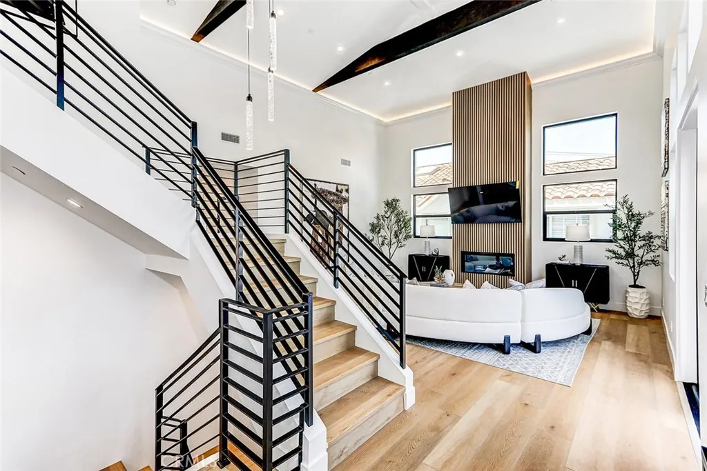 Welcome to 2604 Grant Ave #A, Redondo Beach a beautifully crafted, modern coastal home offering style, comfort, and smart living. This newly constructed residence is one of three luxury townhomes designed with thoughtful features and high-end finishes throughout. Unit A stands out with its private yard, stained exposed beams, vaulted ceilings, as well as a mezzanine giving it a spacious, airy feel. Inside, youll find scratch-resistant and waterproof flooring throughout ideal for families, pets, and carefree living. The open-concept kitchen boasts under-cabinet lighting, a farmhouse sink, gas stove and oven, microwave, dishwasher, refrigerator, and a sleek electric exhaust hood. Custom touches like backlit crown molding, a chandelier over the staircase, and mirrors pre-installed in every bathroom elevate the interior aesthetic. The primary suite features a large ceiling fan, Jack and Jill sinks, a standalone soaking tub, and a luxurious rain shower head. Every bedroom is pre-wired for wall-mounted TVs and ceiling fan installation, while the home is climate-controlled with a Nest thermostat system connected via WiFi for seamless temperature management. Enjoy cozy nights with remote-start gas fireplaces and entertainment-ready spaces including a large flat-screen TV already installed. The roof deck is fully prepped with gas lines, sink, and electrical for a future grill or firepit, making it the perfect spot for sunset gatherings. This unit includes a 2-car garage plus additional covered parking, Ring camera system, EV charger-ready outlet, automatic garage door opener, and