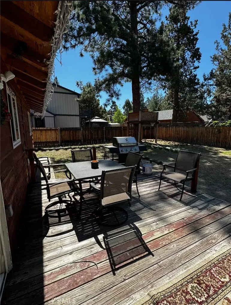 Charming Sierra-Style Big Bear City Cabin Move-in ready and full of character. This cute and clean Sierra-style cabin sits in a quiet Big Bear City neighborhood. Featuring vaulted wood ceilings, dual pane windows, central forced air heat, and an in-wall AC unit, its comfortable year-round. The cozy brick fireplace and butcher block countertops add warmth and charm, while the stackable washer/dryer hookups and large attic with pull-down ladder provide convenience and extra storage. Enjoy a spacious, fenced backyard complete with a 12x12 powered storage shed or workshop. Just minutes from Highways 18 & 38, the community market, post office, Big Bear Lake (less than 5 minutes), and ski slopes (about 10 minutes). Whether as a full-time home, vacation retreat, or investment rental, this property offers the perfect blend of comfort, style, and location.