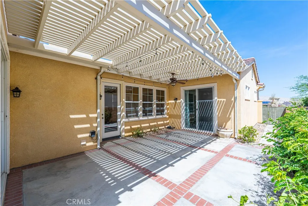 Make this sweet 1-story home yours in the beautiful Verona development, in the Rio Vista neighborhood of Cathedral City. Great floor plan with 3 spacious bedrooms that don't share walls with 2 full bathrooms. The house sits up from the street with a beautiful, low-maintenance desert landscape. A two-car garage off the alley takes you directly into the house. Enjoy the playground and Clubhouse with a community pool and other amenities, right around the corner, such as pickleball. The refrigerator is included. Welcome home to Avenida Quintana!