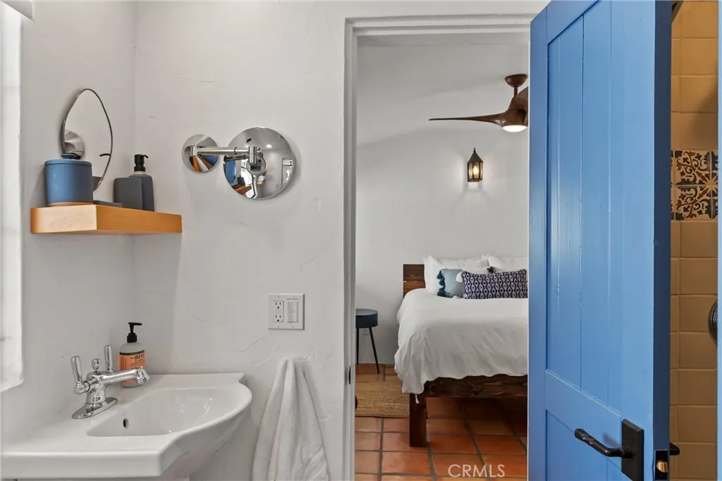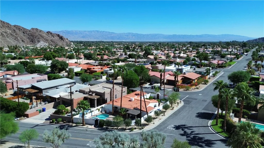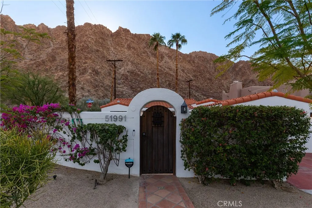 Discover the magic of old California at this extraordinary 1930s Spanish Casita, one of only 60 original homes built in the Historic La Quinta Cove. Nestled on a prime corner lot with breathtaking unobstructed mountain views, this rare desert treasure perfectly marries authentic period charm & modern luxury with no expense spared. Step through the gates into your private courtyard oasis, where flourishing citrus trees add charm to the enclosed front patio. This intimate space captures the perfect morning sun to take in the dramatic mountain backdrop. The heart of this casita is the beautifully remodeled kitchen, featuring premium Bertazzoni induction range, Viking refrigerator/freezer, & KitchenAid dishwasher. The fully furnished turnkey home creates a seamless transition from indoor to outdoor living through dramatic double glass French doors that open wide to blur the lines between the remodeled interior & your private backyard sanctuary, where a saltwater pool, built-in Santa Maria grill, & plenty of space for entertaining await. The covered lounge area provides the perfect retreat for enjoying your private slice of desert paradise. The living room showcases the home's original character with its historic fireplace, while beautiful saltillo tiles flow throughout the home. Individual mini-split systems & elegant Minka Aire ceiling fans ensure year-round comfort throughout. The primary suite offers direct patio access, stunning mountain views, & an en suite bath adorned with handcrafted American Southwest tile work. On the opposite side of the home, two additional bedrooms