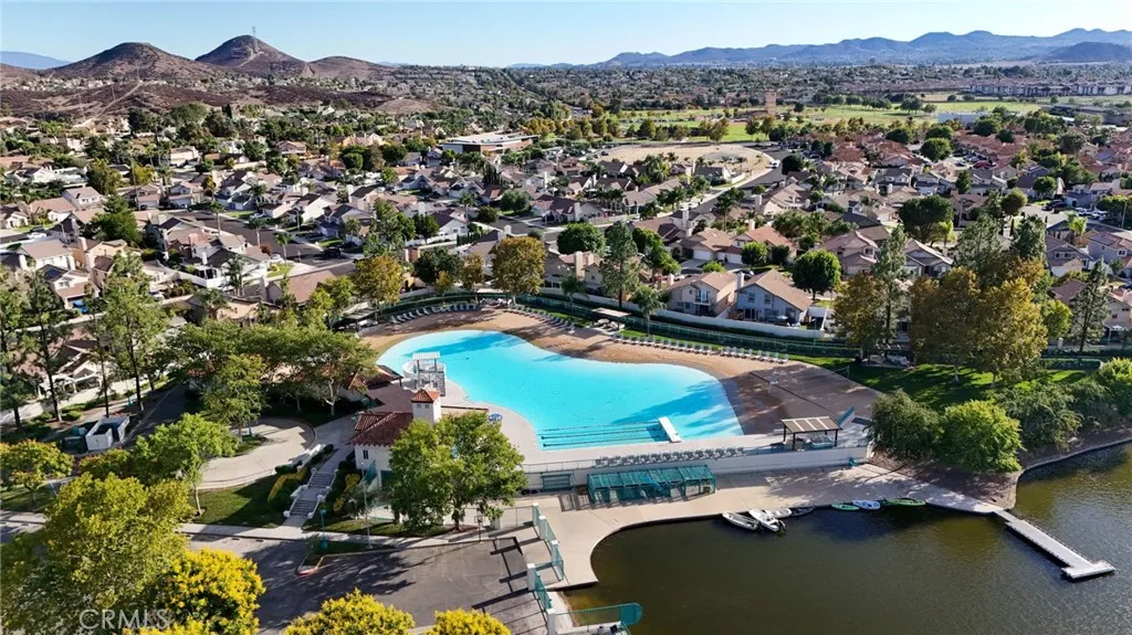 Welcome to 30681 Pier Point Cir, a beautifully upgraded home in the heart of the Menifee Lake Association. Offering 5 bedrooms, 3 bathrooms, and approximately 2,650 sq. ft. of living space on a 13,068 sq. ft. lot, this home is tucked away in a private cul-de-sac and features a rare three-car garage with RV parkingan amenity not commonly allowed in the association. A spacious front yard adds to the curb appeal, and inside youll find soaring ceilings, abundant natural light, and tasteful upgrades throughout. The main level includes elegant tile flooring, a living and dining room combination, and an updated kitchen with white cabinetry, quartz counters, stainless steel appliances, recessed lighting, and a island that flows seamlessly into the family room with its cozy fireplace. A full bedroom and bathroom downstairs provide flexibility for guests or multigenerational living. Upstairs, there are four additional bedrooms with mirrored closets and ceiling fans, a community bathroom with double sinks and a private shower/toilet room, and a spacious master suite with its own deck to enjoy stunning sunset views. The master bathroom has been stylishly updated with modern cabinetry, framed mirrors, light fixtures, a decorative shower and tub, and generous closet space. An indoor laundry room with built-in storage, upgraded fixtures throughout, and a tasteful modern color scheme complete the homes interior. Best of allthere is no Mello-Roos tax. The backyard offers a large concrete patio and a lattice-covered sitting area, providing a blank canvas for your creativity. Location is trul