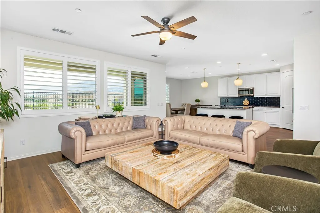 Welcome to Summerwind Trails! Impeccable turn-key single story home offers the perfect balance of modern luxury and natural tranquility. Seamless open concept flow is designed for effortless living and entertaining. Sleek kitchen features a large center island with seating, stainless steel appliances, granite counter tops & a stylish tile backsplash. The plethora of windows in the living and kitchen area fill the home with natural light. Spacious primary suite includes a generously sized walk-in closet with custom cabinetry. This home is perfectly positioned to capture uninterrupted, sweeping vistas of the majestic mountains from inside or outside the home! Highly desired location with convenient access to the 10 freeway, convenience centers, schools, community park & the HOA walking trails.