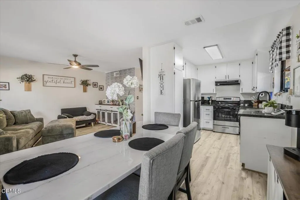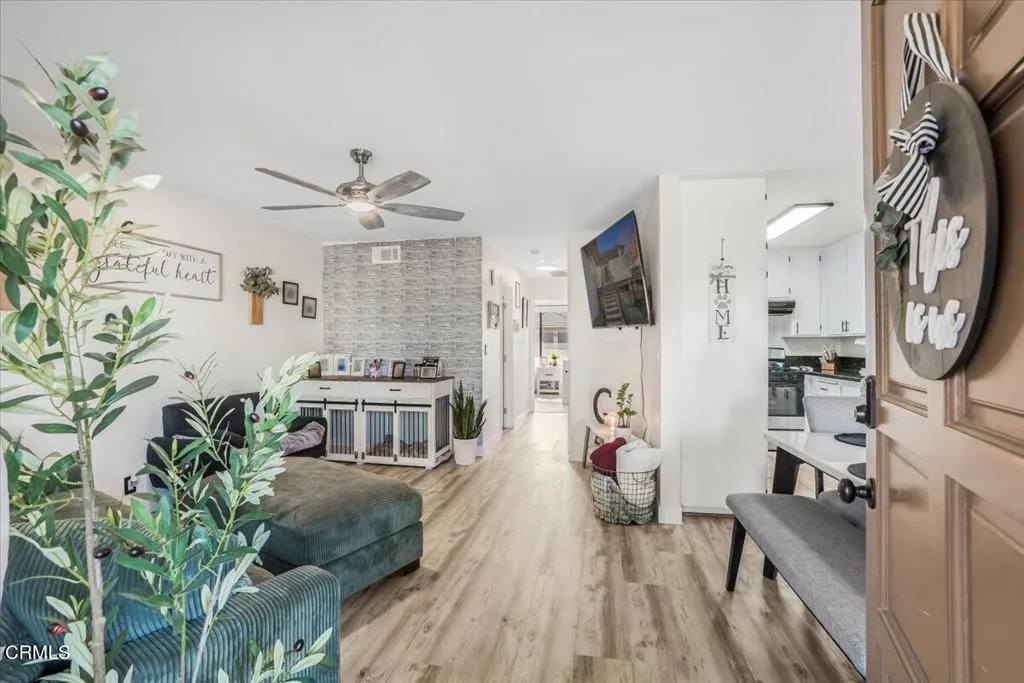 Newly remodeled 2 bedrooms and 1 full bathroom corner condo with a private patio and 2 car garage- perfect for first time home buyers or investors growing their real estate portfolio. Experience comfortable, low maintenance living in this freshly updated corner unit. Every detail has been thoughtfully upgraded to feel brand new, from the floors to the fixtures. Newly remodeled throughout: laminate floors and baseboards, fresh interior paint, updated kitchen cabinets and bathroom vanity paint with fixtures. Kitchen upgrades include a garden window, granite countertops, pull-out drawers, and a newer stove. In-unit laundry with stackable washer and dryer conveniently located inside the condo. The dining/living room area has a sliding door that opens to an upgraded exterior patio. A 2-car garage plus ample guest parking nearby. The community offers the following amenities: greenbelt surrounding the community, on-site pool and jacuzzi, as well as trash included with the monthly dues. Schedule your appointment to view this great opportunity in a highly sought after community!