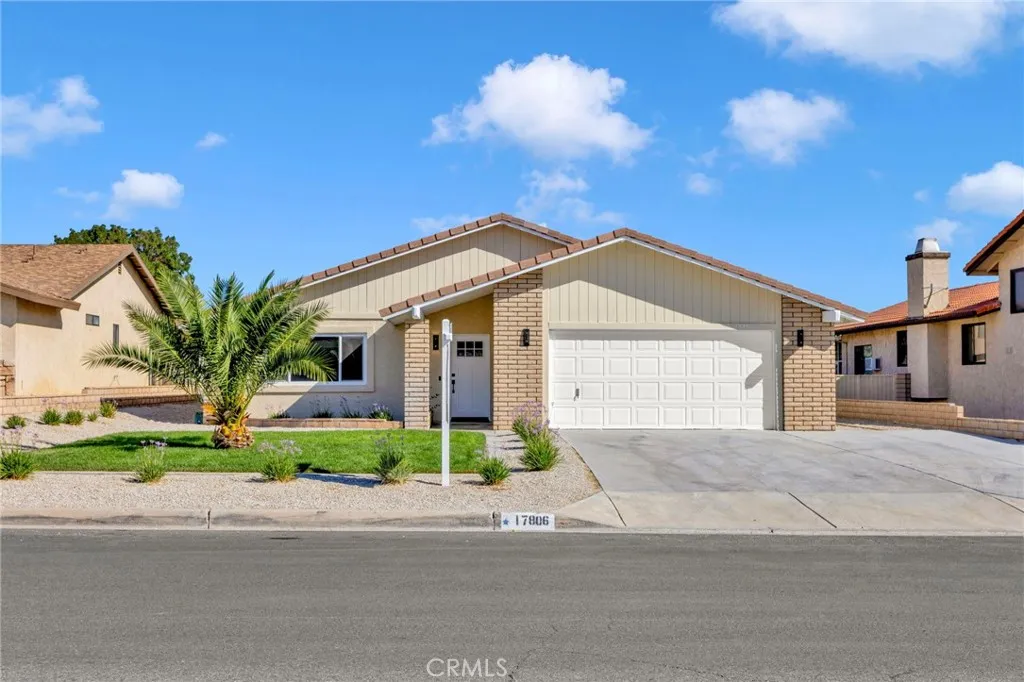 Welcome to 17806 Pebble Beach Dr Victorville, Ca 92395. This completely renovated home features 3 bedrooms 2 bathrooms 1,727 Sq Ft of spacious living. Enjoy the modern designed kitchen featuring sleek quartz counter tops, modern functional self-closing white oak cabinetry accented with matte black hardware, black stainless steel appliances to include free standing range , microwave and dishwasher. Completely remolded and no detail has been spared in creating a comfortable and elegant living space for you and your family. The floor plan creates a seamless flow from room to room, making it ideal for both everyday living and entertaining. Three spacious bedrooms await. The master suite features a walk in closet, dual vanity sinks, along with a modern glass encased walk-in shower, white oak cabinetry and vinyl flooring throughout give a luxurious feel and vibe to relax and enjoy. The outdoor living space is complete with a full landscaped front and back yard. This property offers endless possibilities. Don't miss out on the opportinty to call this beautifully remodeled home yours. Scedule a viewing today to experiance the lifestyle and comfort this property offers. Your dream home awaits!