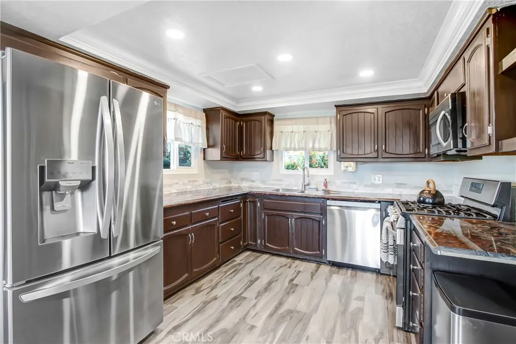 ~Panoramic Lake Views, No HOA, with Low Tax~ Welcome to this spacious two-story home in the desirable Lakeland Village community, offering breathtaking panoramic lake views and no HOA! This home has been recently remodeled with a new roof, dual pane energy-efficient windows, new flooring throughout, new HVAC system with ducting and new rollup garage doors. The main level features a large living and dining area with wood-beamed ceilings, abundant natural light, and direct access to a wrap-around deck perfect for entertaining or simply enjoying the views. The roomy kitchen provides plenty of cupboard space for all your storage needs. The master suite offers wood-beamed ceilings, serene lake views, a ceiling fan, and a master bath with dual sinks. Downstairs, youll find a comfortable family room with a cozy fireplace, along with a convenient bedroom and full bathroom. Additional highlights include a two-car attached garage and a spacious side yard with ample room for a boat or RV. This property combines charm, functionality, and unbeatable views in one incredible package. Dont miss your opportunity to own in Lakeland Village with no HOA fees!